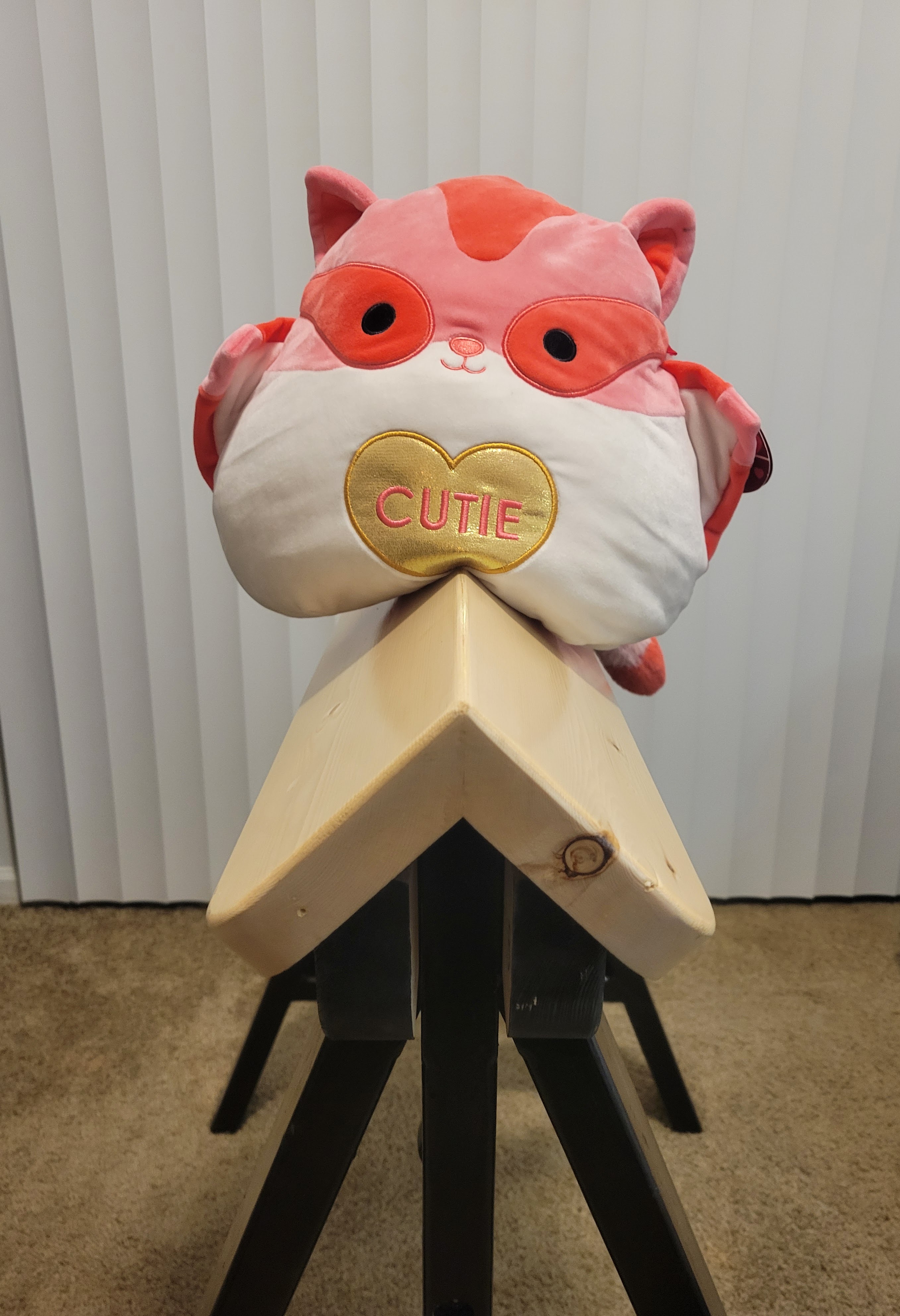 The way that one plays with Spanish horse is one sits on the horse vertically with their legs on either side of the bench. This stuffie helps give a visual understanding how one sits. It is not supposed to be comfortable; it is supposed to be tolerable and somewhat painful. It is used for "predicament bondage" play. This kind of play is important to keep in mind mobility, balance and other types of medical issues. I had this attachment designed to fit my body so that my health concerns were not at risk.