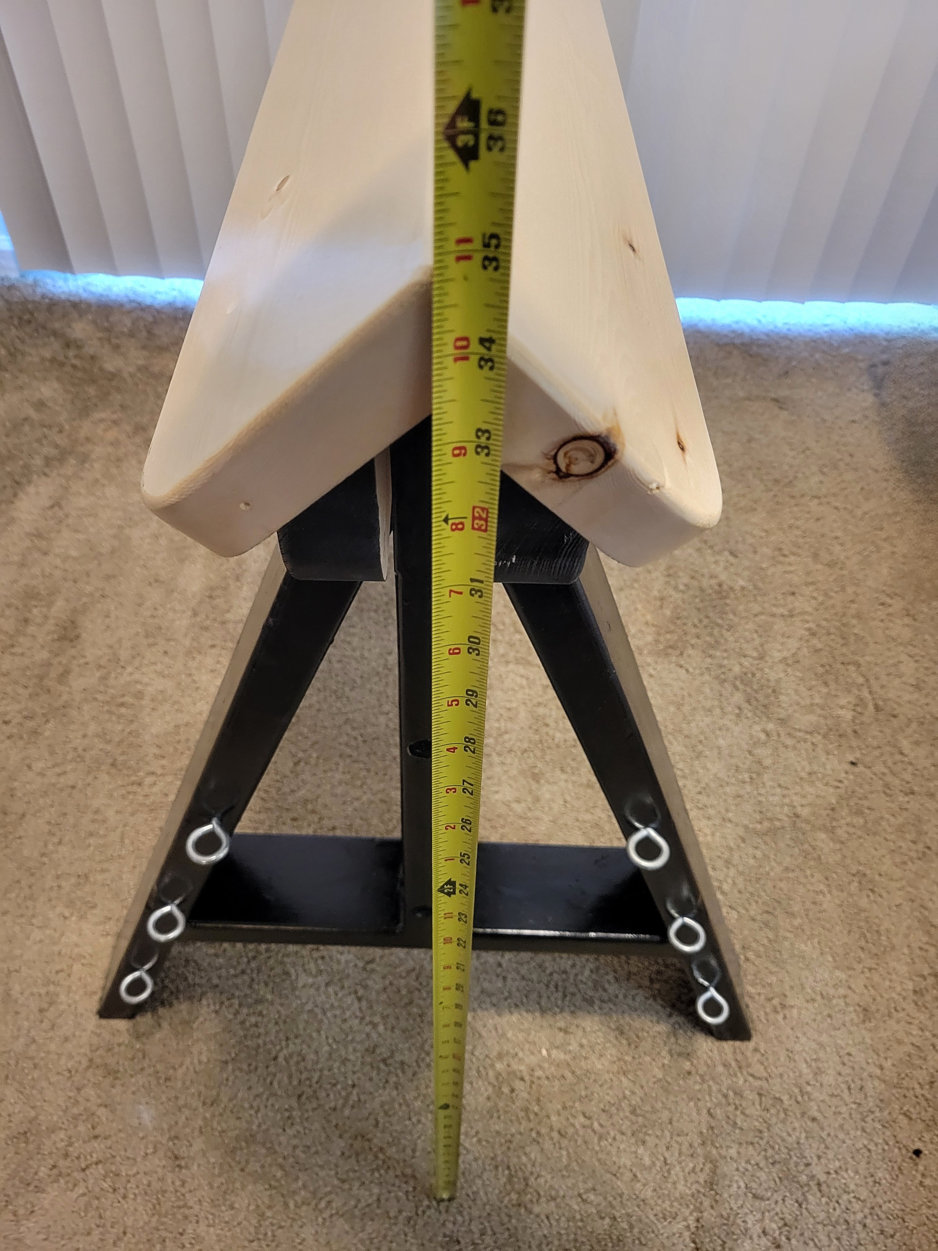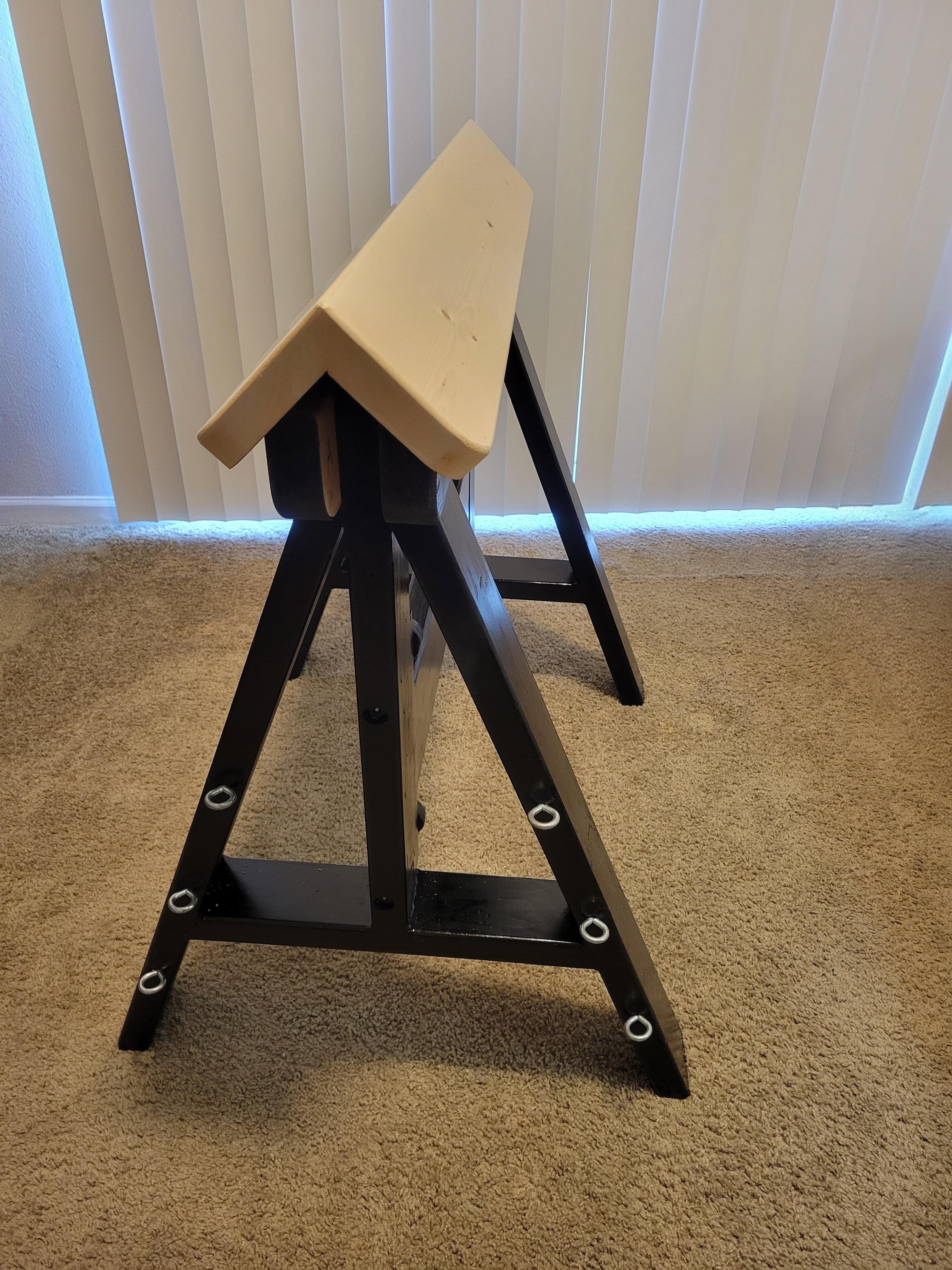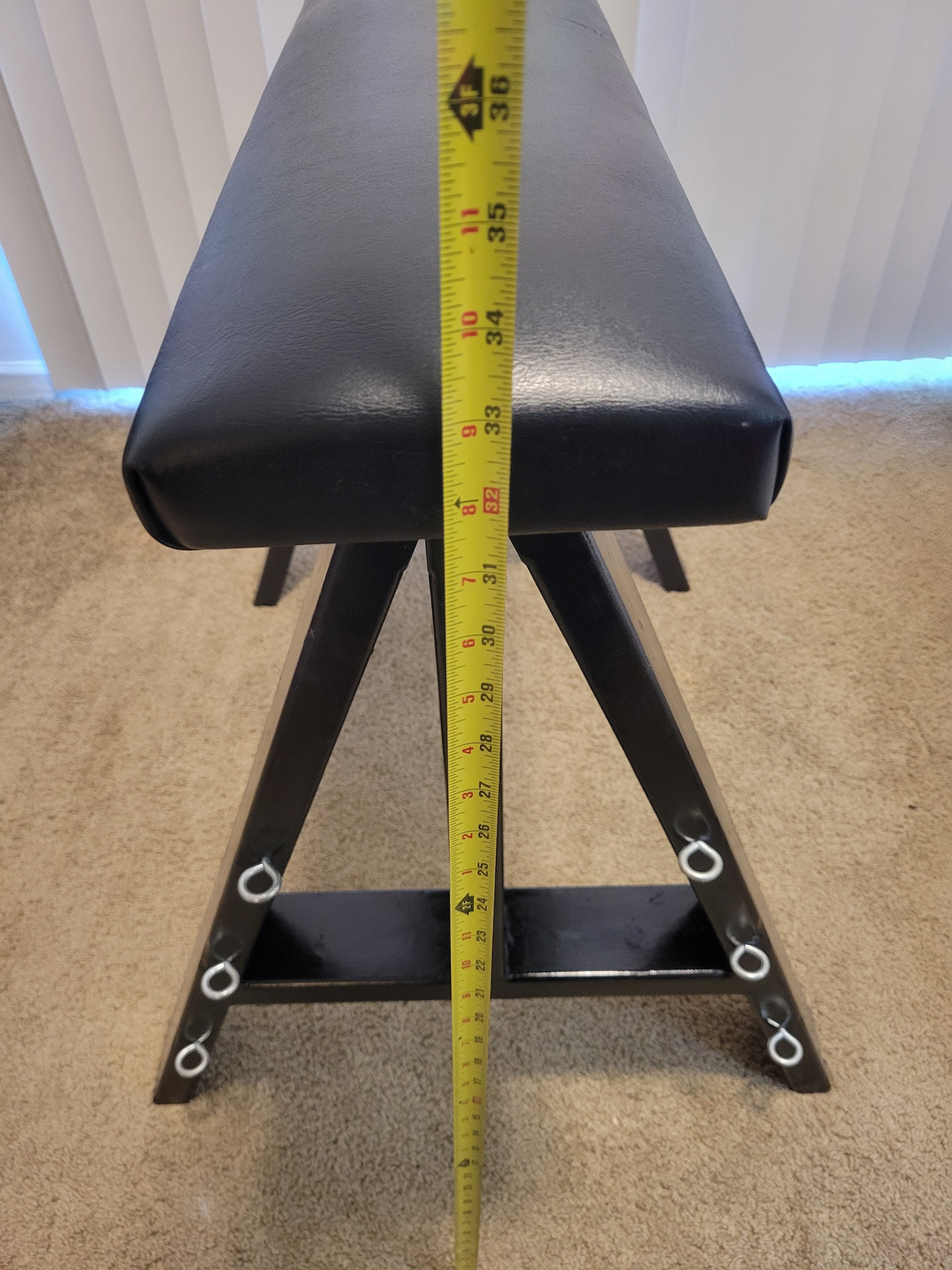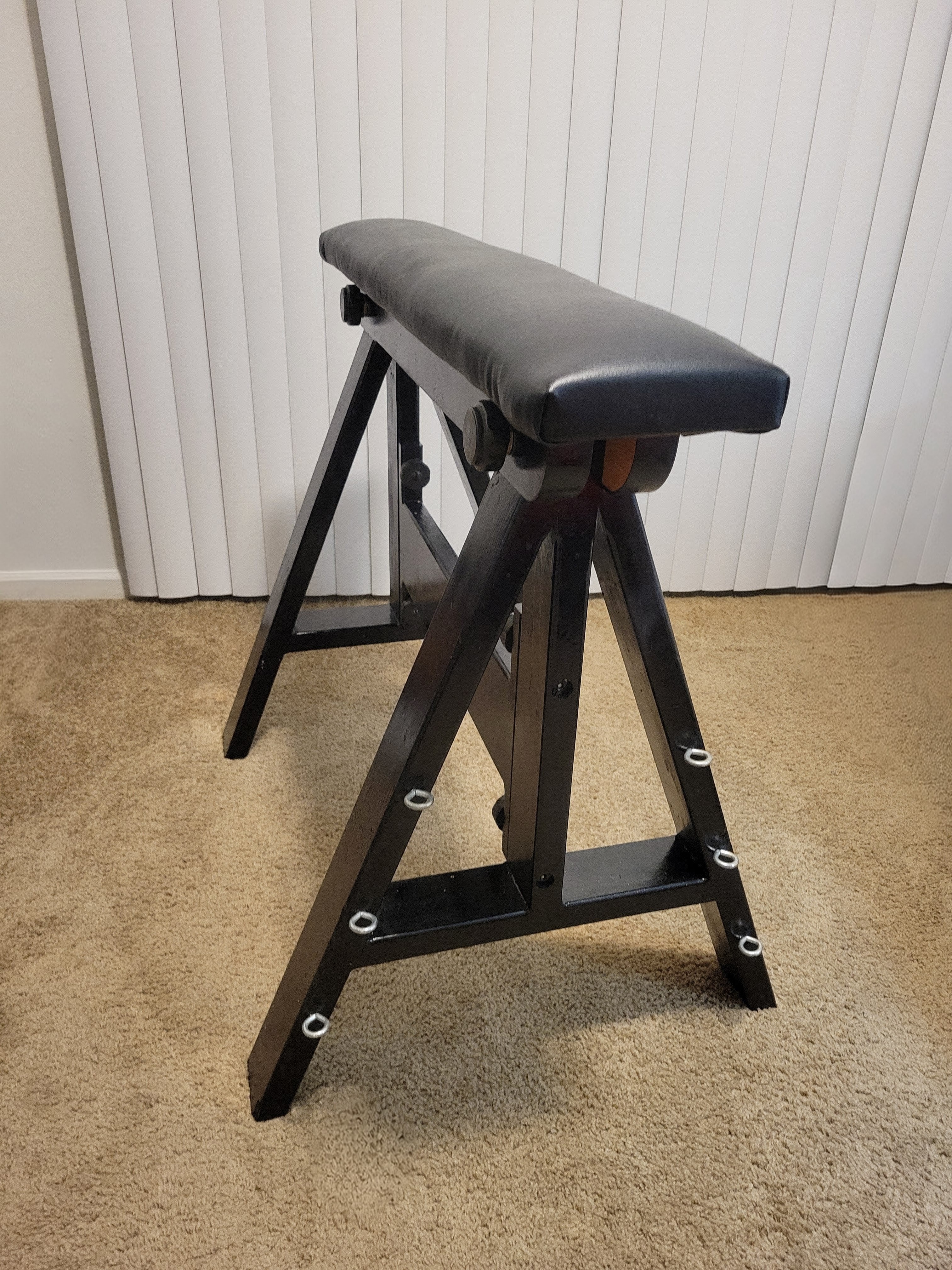 This is a handcrafted piece by MstrMstrssBDSM on Fetlife. They have shops on spicerack at MasterMistressBDSM and BDSMfet on Etsy. They have been making BDSM toys since 2010 and selling since 2017. BDSMfet creates items from bondage furniture, nipple play toys, and leather pieces. I originally bought the flat bondage bench from them at the "Annual Kinky Crafter's Sale" in Topeka, KS. I then asked if they could make a custom Spanish horse attachment, as it had been a dream piece for my personal dungeon.