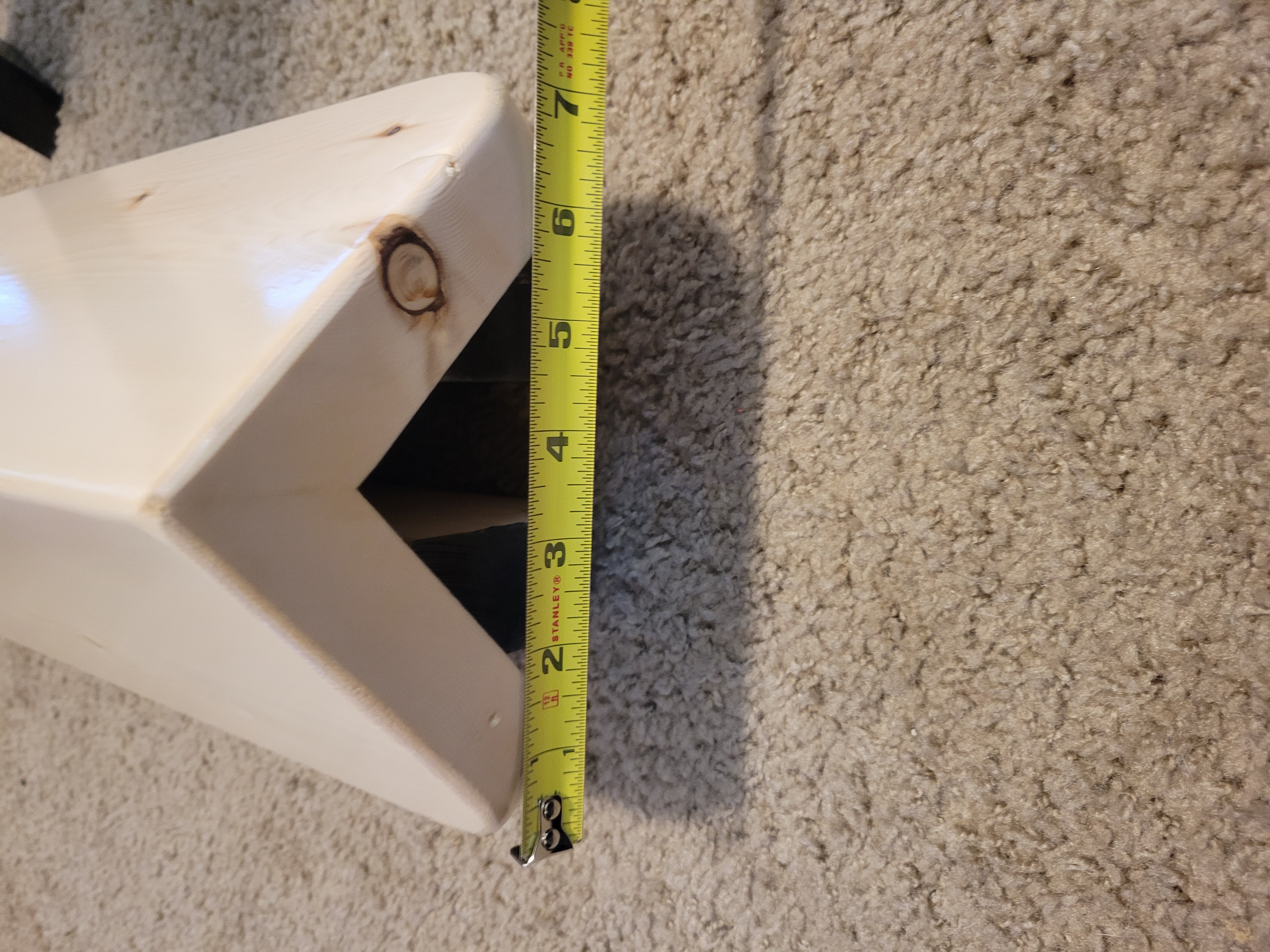 The Spanish horse is actually quite comfortable for being made for predicament bondage. Because I had the horse specifically measured to my body, the angle of the point is on the wider side. The widest part of the point is 7in (17.78cm). If the angle was narrower, it would be more painful for one to sit on. I quite like the angle that it has, and I am able to fully enjoy the position. I am even able to grind a crossed the toy with sufficient amount of pleasurable pain. With the horse being so tall, I have a decent amount of distance where my legs do not reach the floor. I wanted to be able to add weights around my legs in order to add more pain while sitting on the point. The eyelets on the base triangles provide good hold for tying rope.