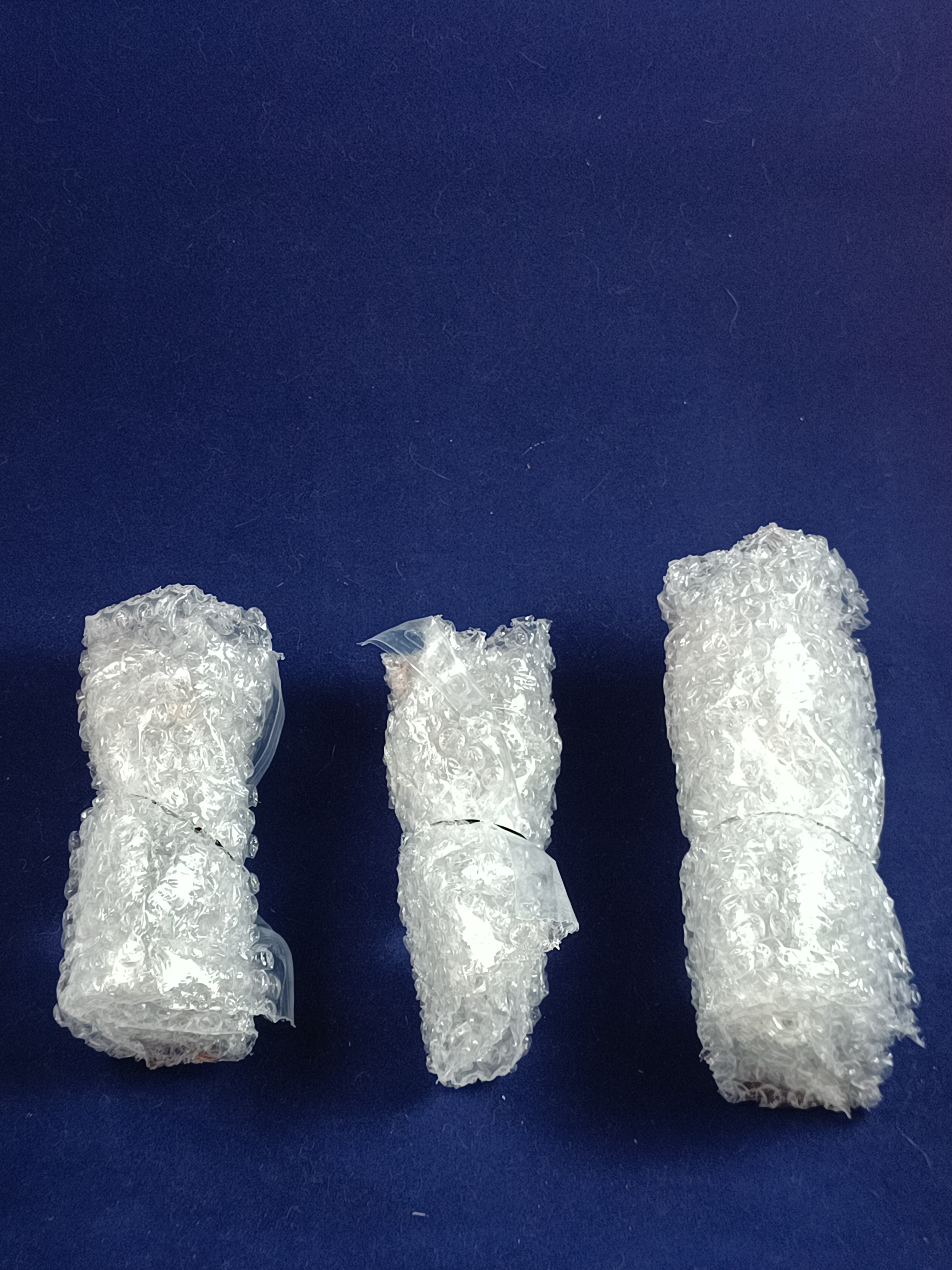 Inside the package: three individually bubble wrapped plugs of various sizes.
