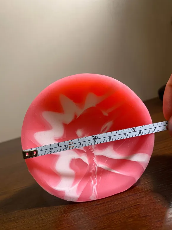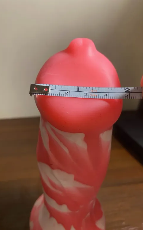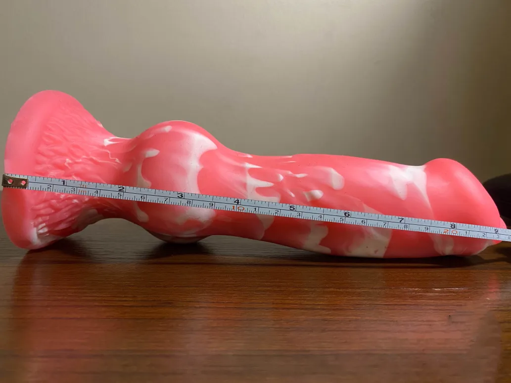 I would describe the toy’s design as colorful, nicely fantasy inspired, and if I’m being honest a bit intimidating in person, especially when it’s finally time to use it. You just start to feel a certain "respect" for it, the moment you realize what you're about to take on, especially if you're like me, and it’s your first toy of such a size. The pink and white swirls give it a cute, almost playful appearance, but the size and shape are absolutely no joke. With a 2-inch (diameter) tapered head, a thick knot bulge measuring around 3 inches in diameter, and a wide, flared base for stability, this toy is clearly designed to deliver a deep, stretching sensation. At nearly 10 inches in total length, it’s definitely not beginner-friendly, but for those looking to explore something more adventurous and intense, it’s an exciting choice.