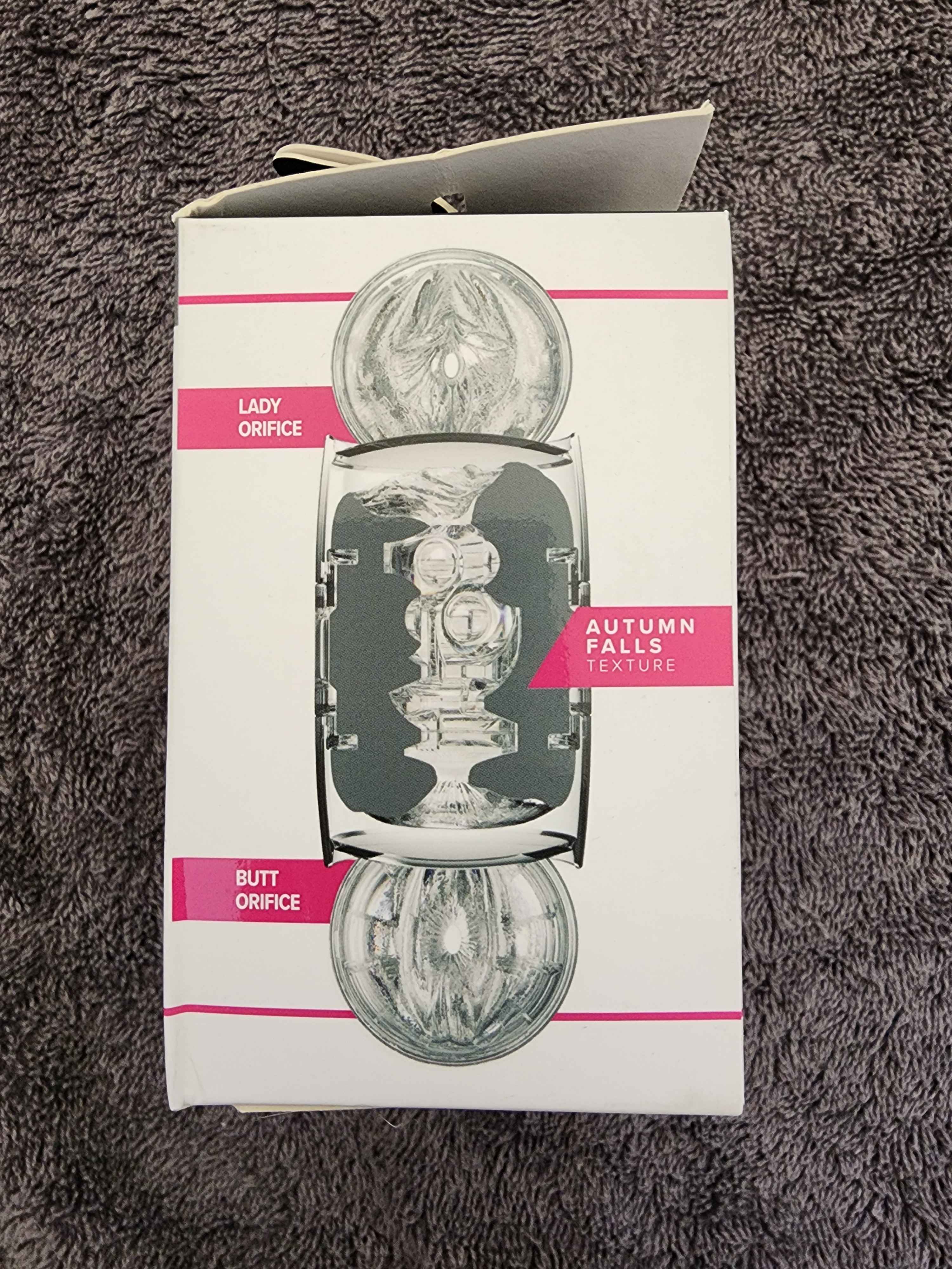 The Autumn Falls Quickshot packaging follows along with most Fleshlight products. You get a picture of Autumn on the front holding the Quickshot, and on the back and sides you get things such as a view of both the vagina and ass entries with a cross section view of the sleeve and its textures.
