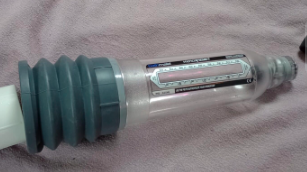 The main cylinder is made from a clear, rigid polycarbonate tube with measurement markings to help users track expansion during sessions. The transparency serves both a psychological and practical role: it allows users to see what’s happening inside the cylinder, monitor how much expansion is occurring, and make sure they aren’t overdoing it. The base of the cylinder connects to a flexible gaiter/bellows system designed to hold water and form the vacuum seal once pressed against the body. On the HydroXtreme models, this area tends to feel sturdier and more refined than on the basic Hydro series, making the seal more reliable when set correctly.
