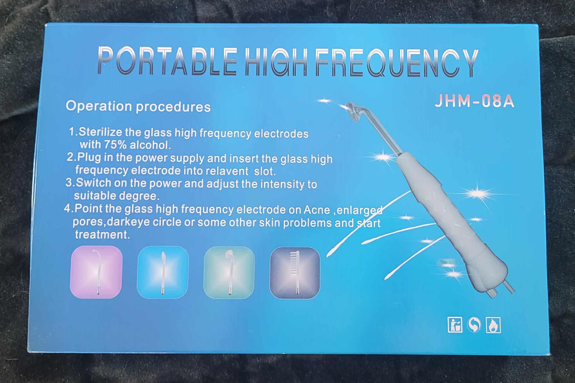 The packaging is definitely boring but practical. You can tell it's an Amazon item given the strangely worded directions. It doesn't even really have a proper name - what is a "portable high frequency?" It's not going to win any beauty pageants, that's for sure. After all, it's being sold as a health product, not a sex toy.