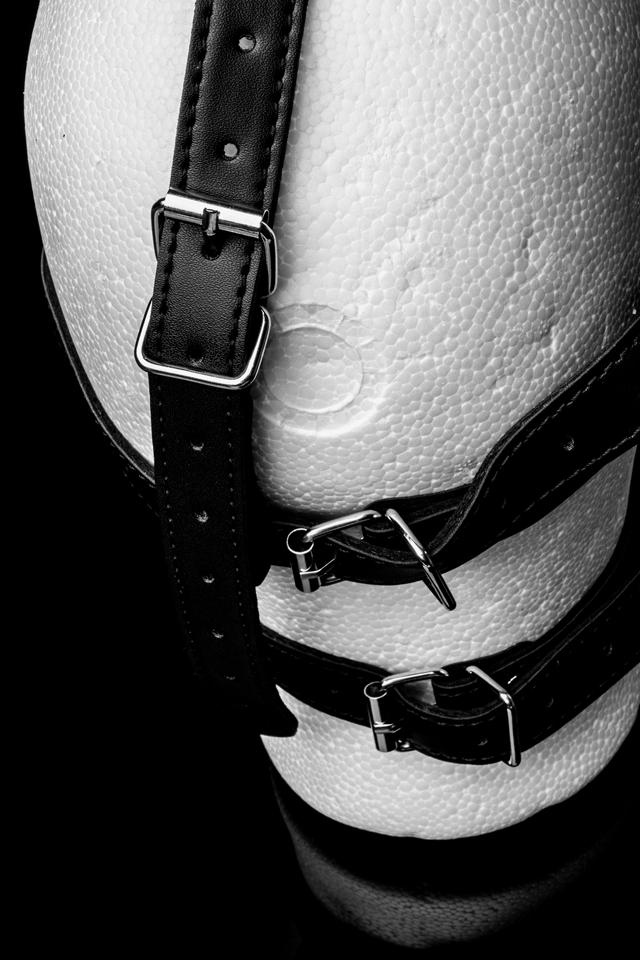 The Blindfold Harness + Ball Gag is a foundation piece — a flexible anchor on which to build a variety of scenes. Here are some pairing and scene ideas: