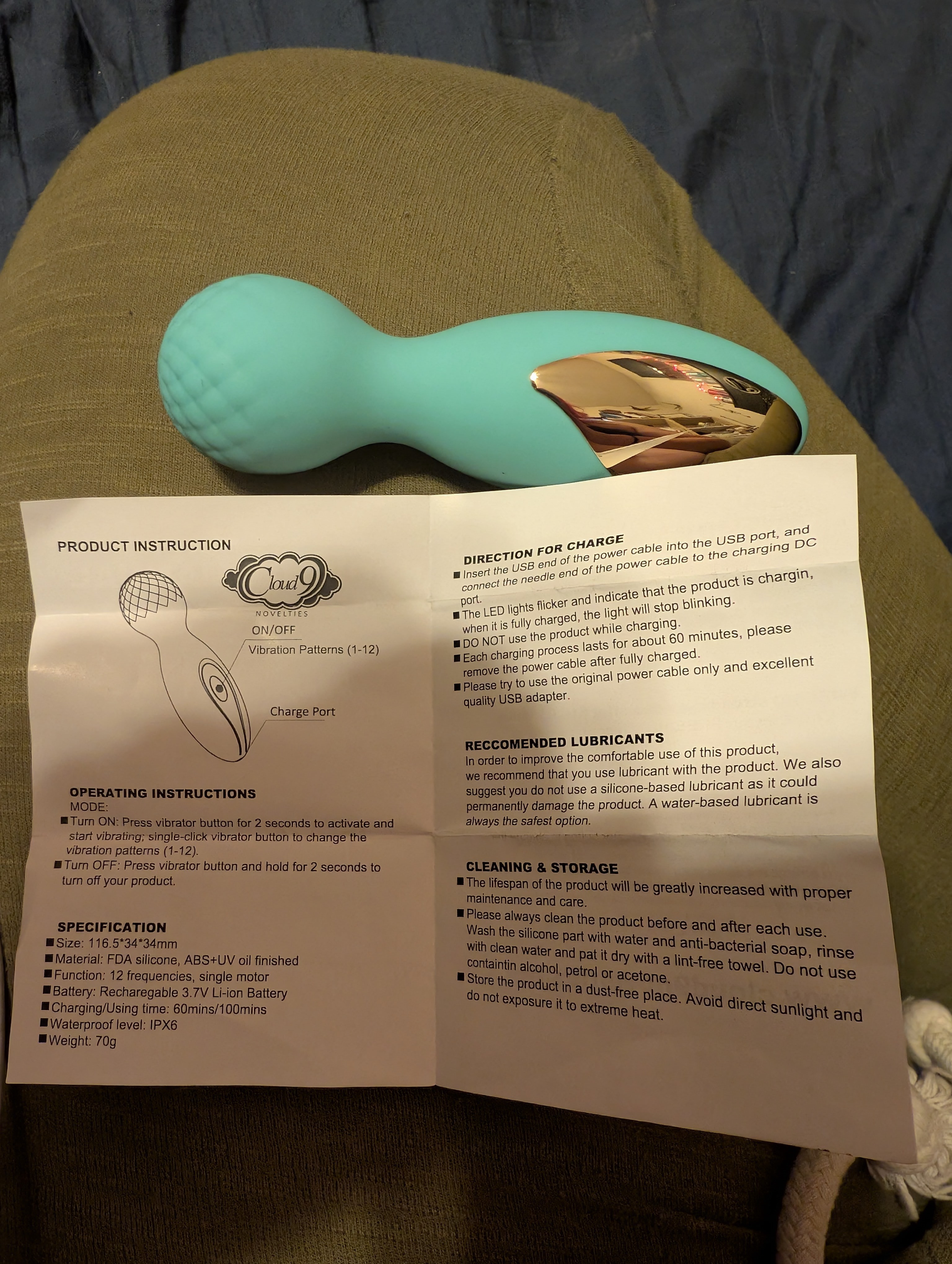 The 12 vibration modes give you plenty of variety, from steady settings to pulses and patterns. I found the consistent, steady settings to be the strongest and most satisfying, but the patterns can add some nice variety if you're in the mood for it. The flexible head makes a big difference in comfort during longer use, because it moves with your body rather than pressing stiffly against you. Only thing it doesn't have a continuous vibration of just vibrating... I prefer when it has multiple sets getting stronger of continuous vibration.