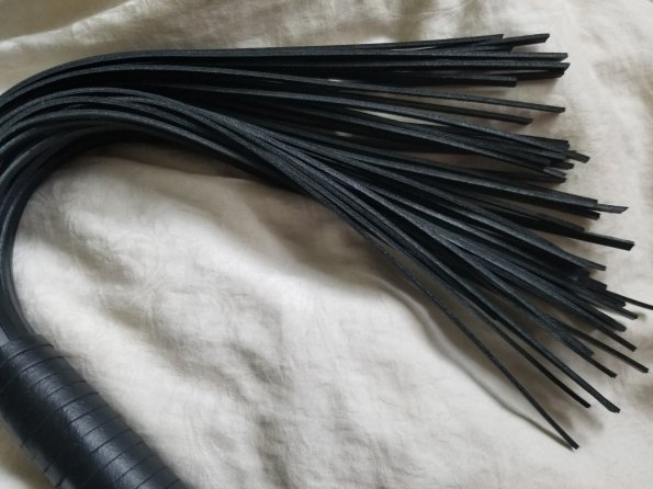 It is hard to put into words the sensation of the leather tails against bare skin. I had expected something harsher, sharper, maybe even more punishing than a paddle. What I discovered was the opposite. The flogger felt gentler, less concentrated, the impact spreading rather than striking a single point.