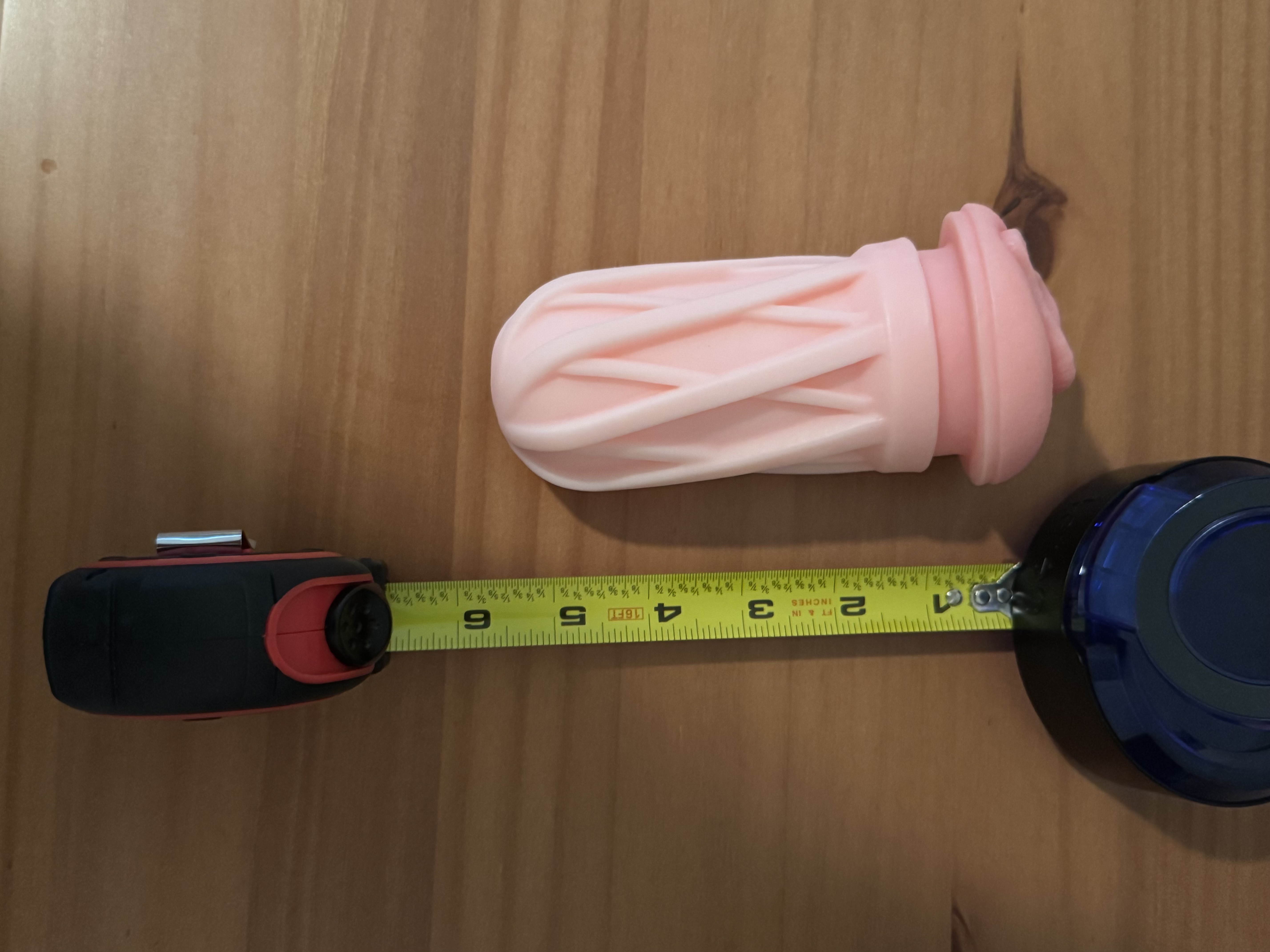 The design is not overly complicated, but it delivers on all the points that it needs to. The sleeve is 5.71 inches deep and the toy can thrust 1.57 inches, which gives you a good range to work with. The thermos is also visually discreet. When the cap is on it's not obvious that this is a sex toy and it could easily go unnoticed if you accidentally left it out in the open. The cap also has a magnetic ring attached to it that can be used to hold your phone while you are using the toy. It's not some huge game changing quality but it is just another little thing that this toy does well.