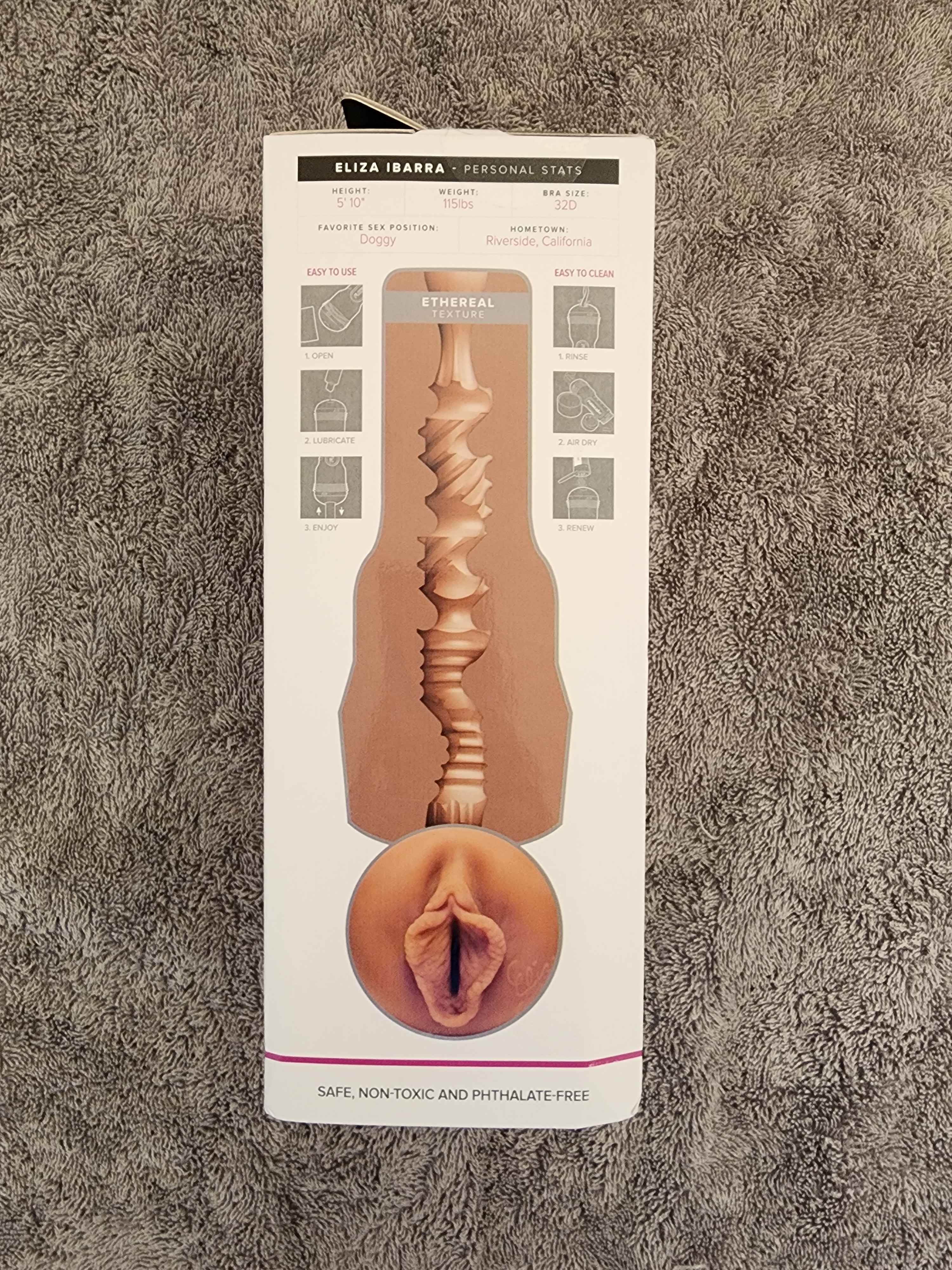 The packaging for the Eliza Ibarra Ethereal Fleshlight is just like any other from the Fleshlight Girls lineup. A picture of Eliza on the front with the back and sides showing things like a view of the orifice, a picture of the internal textures, some other products Fleshlight sells and some personal stats about Eliza.