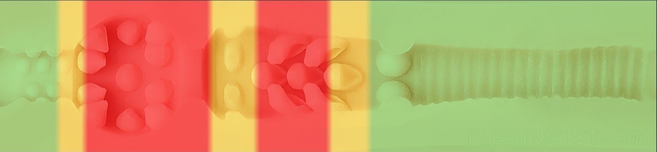 The image below shows which parts of the sleeve users rated the best (hottest!). Red spots are the most liked, yellow intermediate and green sections are the least popular. This is based on an algorithm that calculates the best hot-zones based on user submissions. - From Fleshassist.com