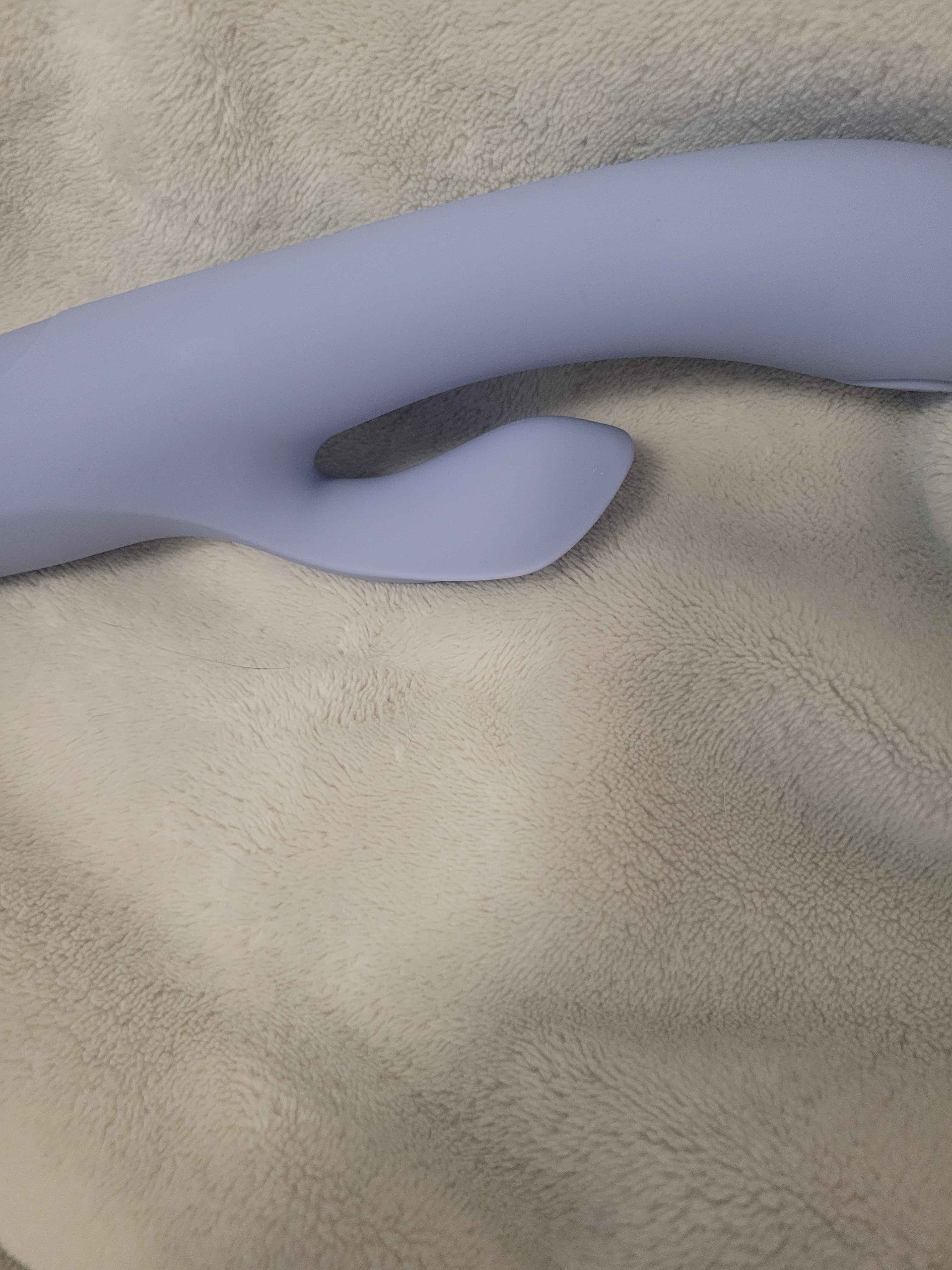Alright, maybe it's just not for me. At least there's dual stimulation so I can focus more on clitoral pleasure, right? The clitoral vibrator has a unique flared design that's probably meant to guide the clitoris to where the vibrations strongest. In reality, all it really does is restrict the toy to a specific body type. If, like me, you have a vagina that doesn't perfectly align with the shape of the toy, you're shit outta luck. The flared design forces you to align the toy in a specific position in order to feel any stimulation, with no room for error or flexibility. In order for me to align it properly, I had to bend the flange back or hold the vibrator at an uncomfortable angle.