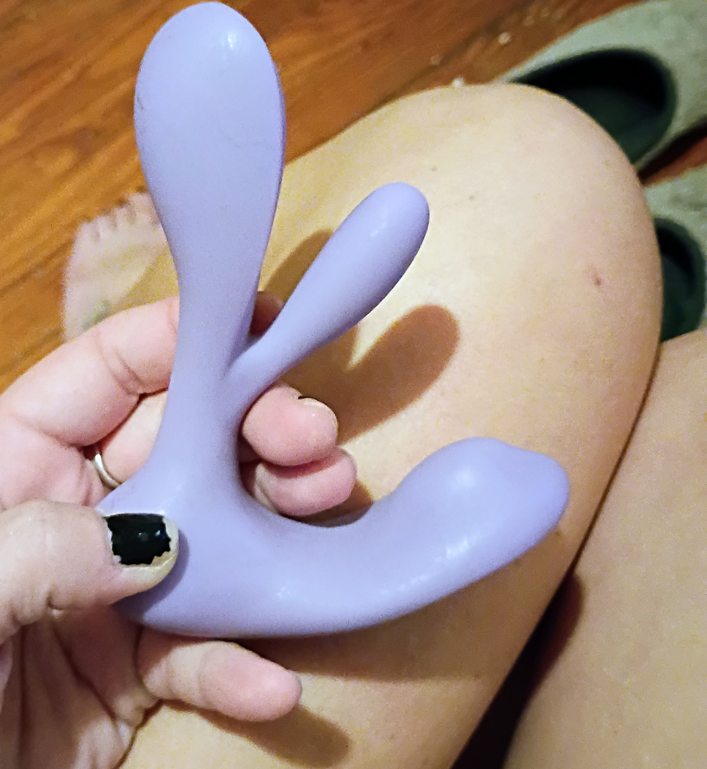I was most surprised by the unconventional M-shaped curve and the three-pronged design. While unusual at first glance, the ergonomic shape immediately proved its value, designed perfectly for its dual-stimulation purpose. It doesn't immediately look like a traditional sex toy, which is a major advantage for discretion, yet it remains visually compelling and very sleek. The size is ideal for secure, hands-free wear.