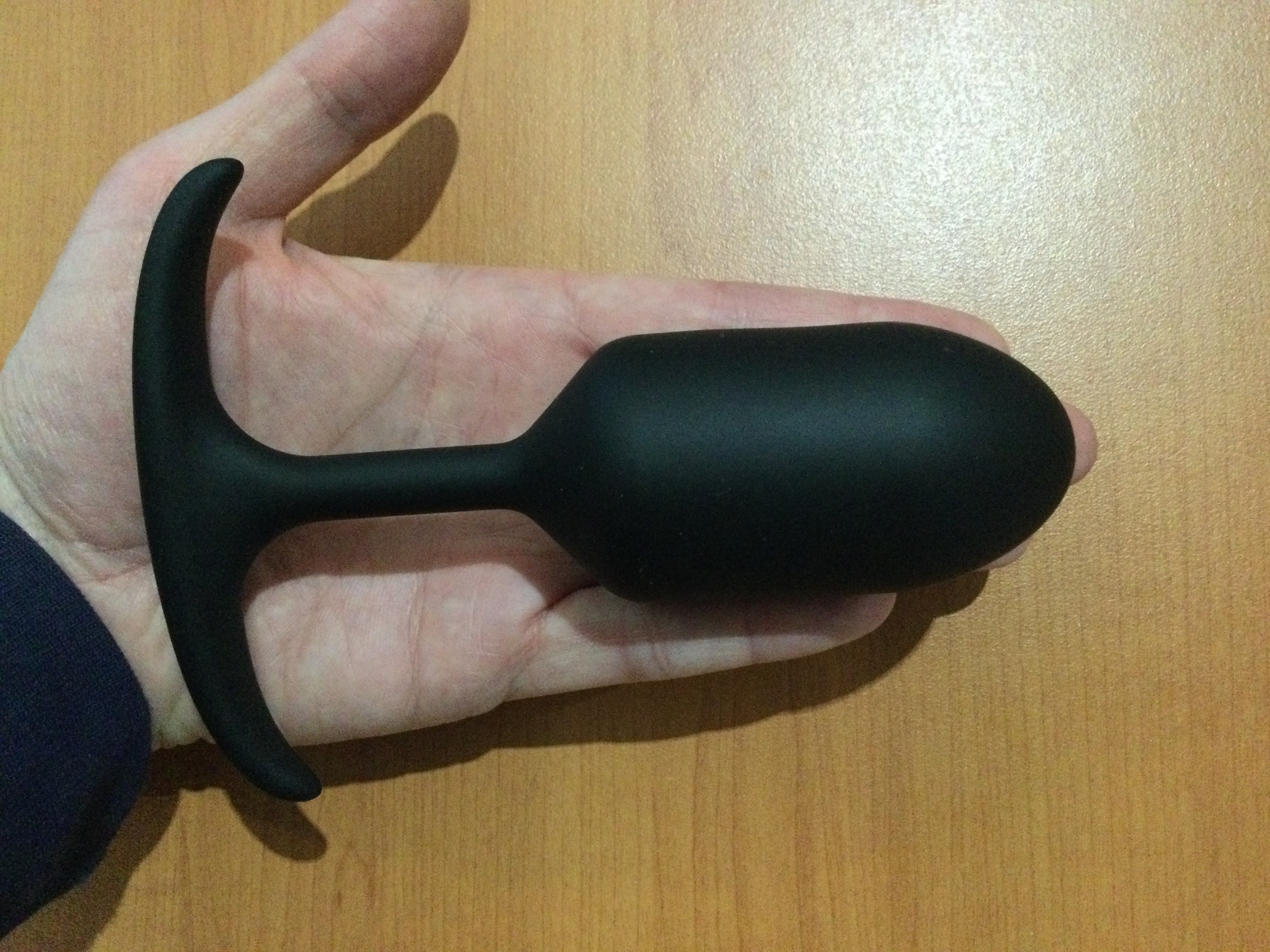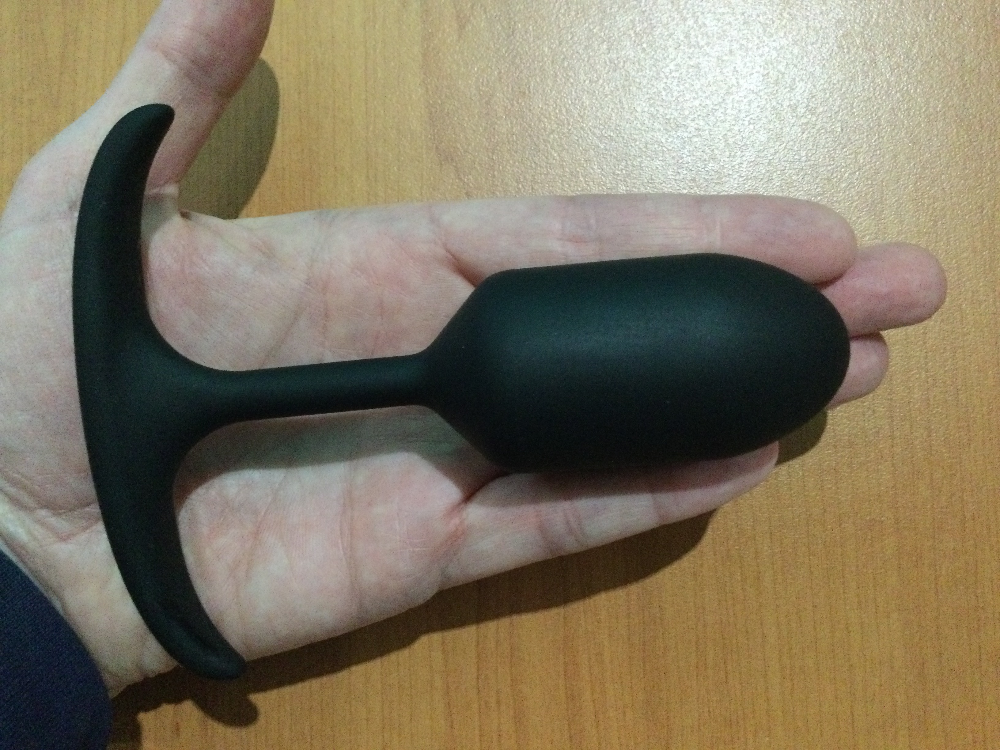 Design-wise, you have a bullet-shaped butt plug with a T-bar base; the outer skin of the plug is body-safe silicone. This makes the overall product safe for extended use. The neck and the T base are wide enough to feel sturdy, so that I have never been worried that the plug will get lost. The bullet shape makes insertion of even the largest of the plugs easy and comfortable. The plugs come in four sizes: small, medium, large, and x-large. I own all but the small one. They are all similar in design, just larger and heavier as you go up.