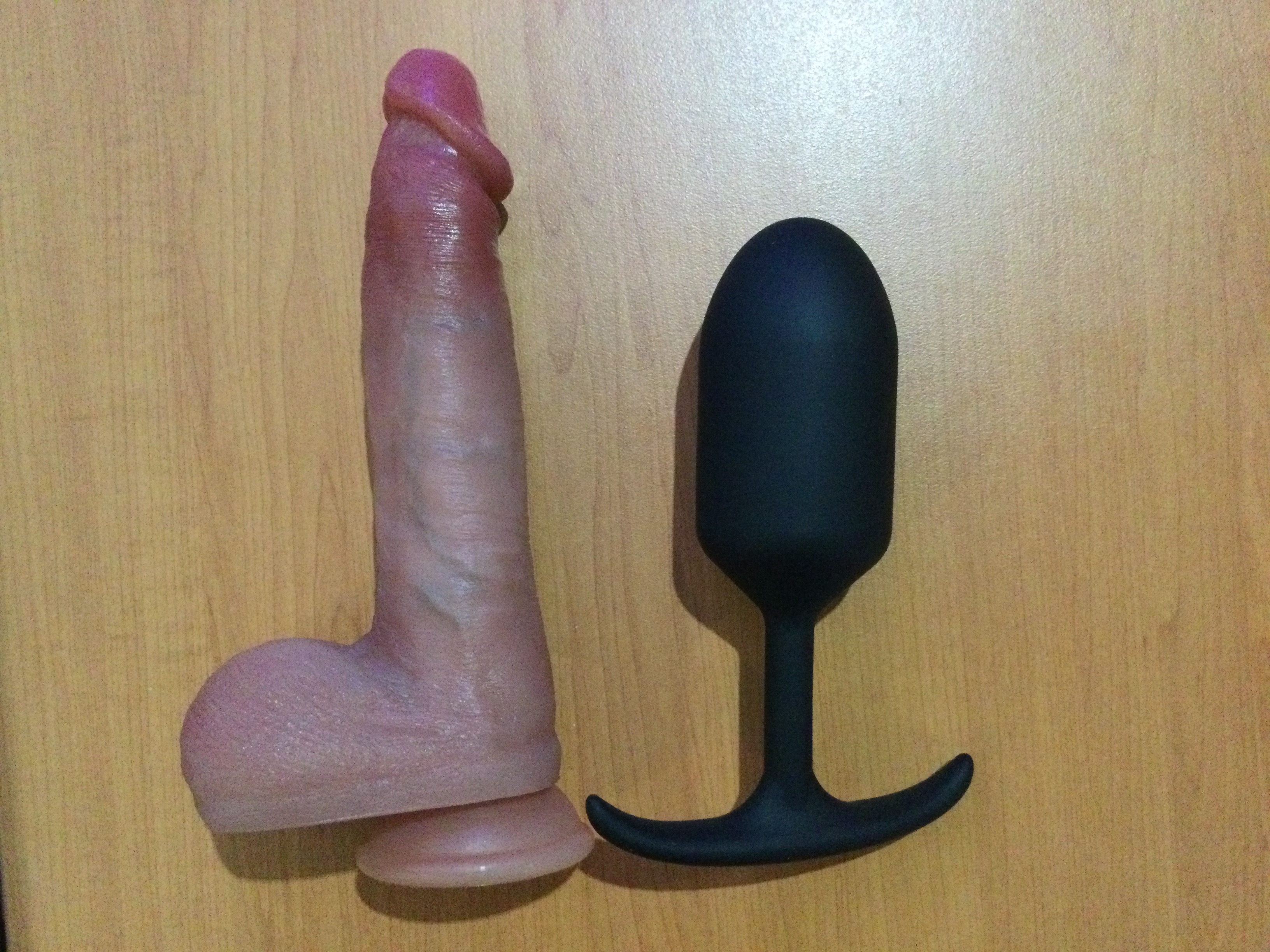 Comparing the Heavy Hitter X-Large to an average-sized dildo. This is not for the faint of heart.
