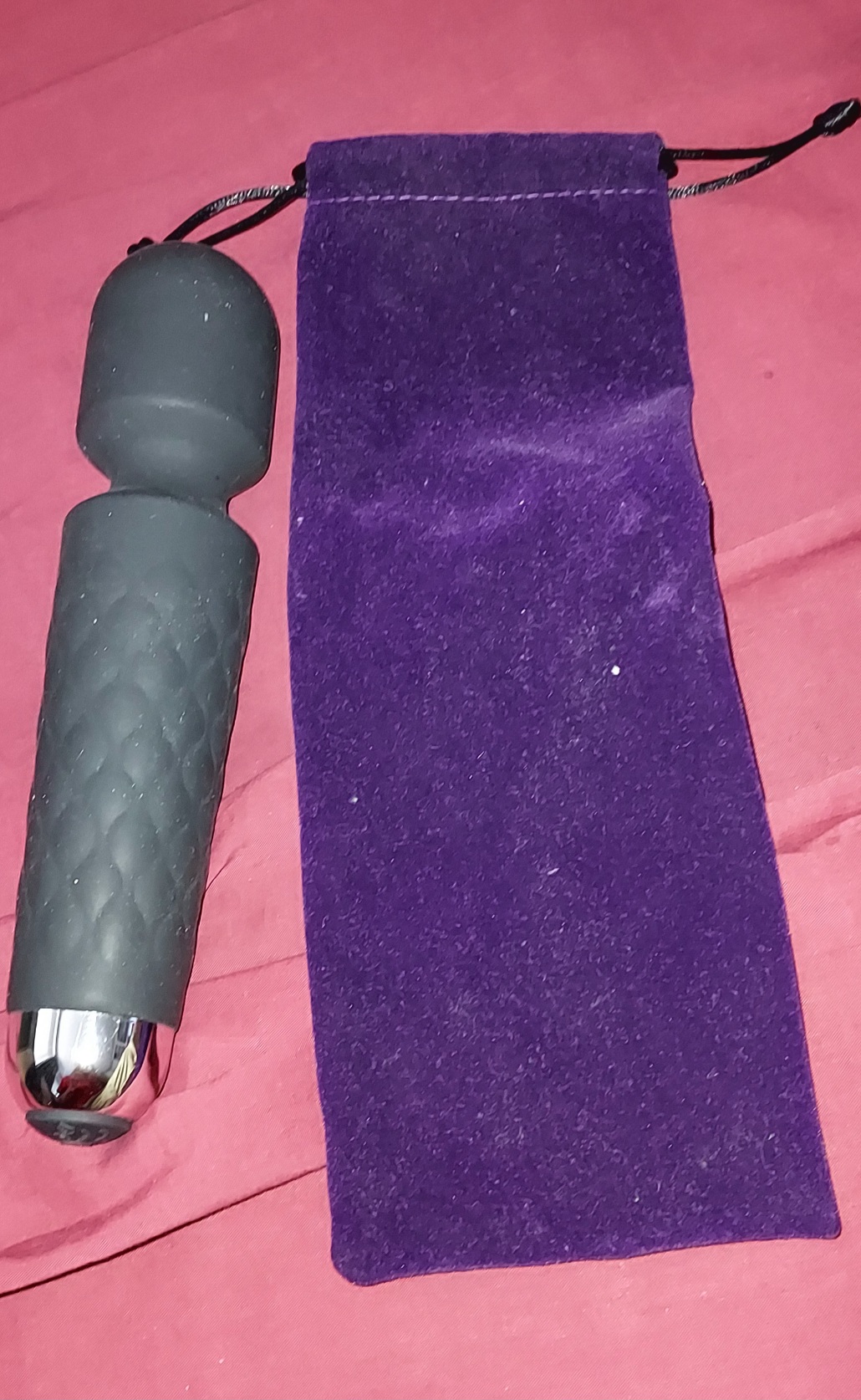 It's very easy to clean afterward. There's really no maintenance with this handy vibrator, and it even comes with a velvety bag to store it in. Don't mind the small specs of lint on it. That didn't show up with the naked eye!