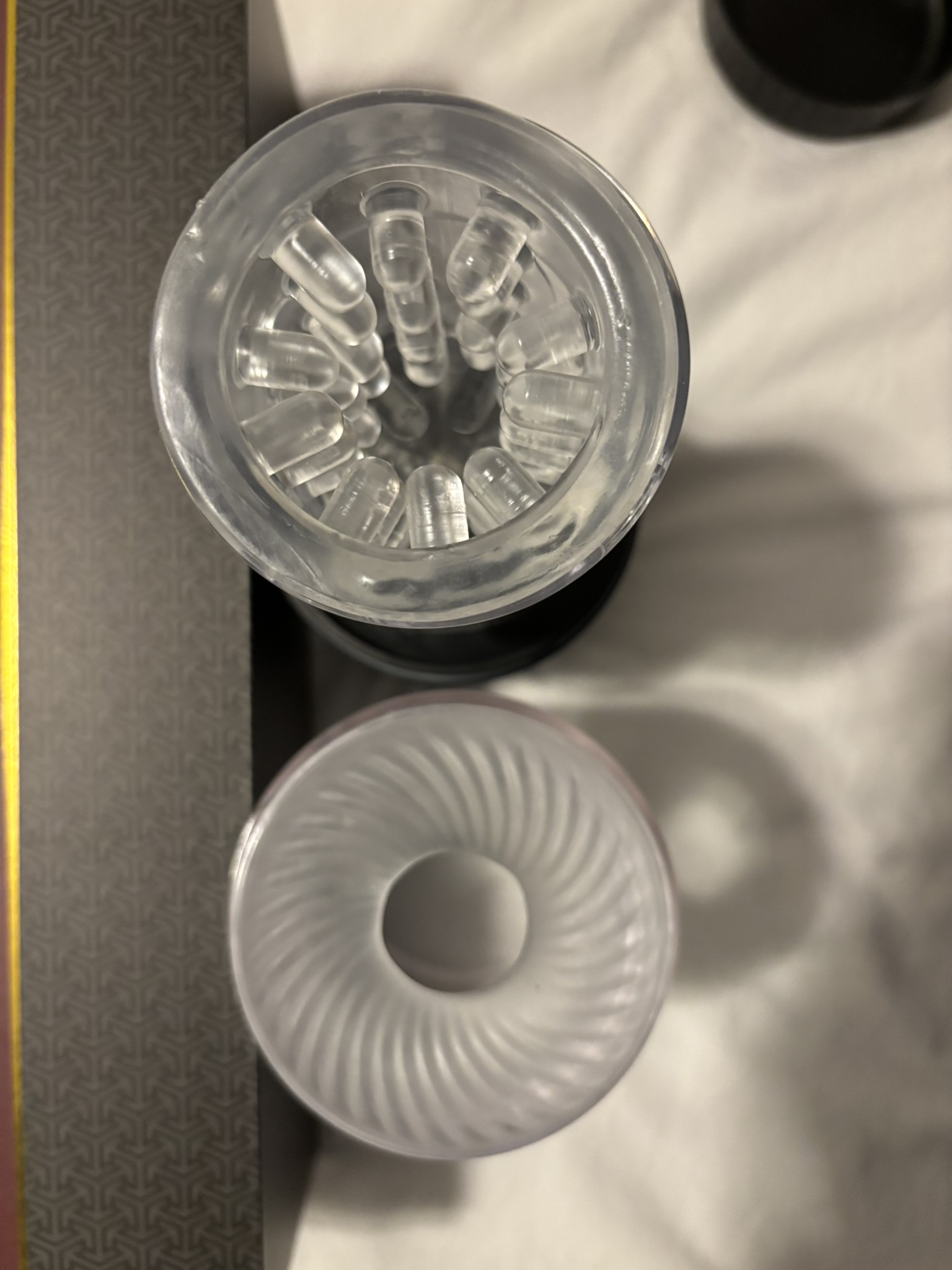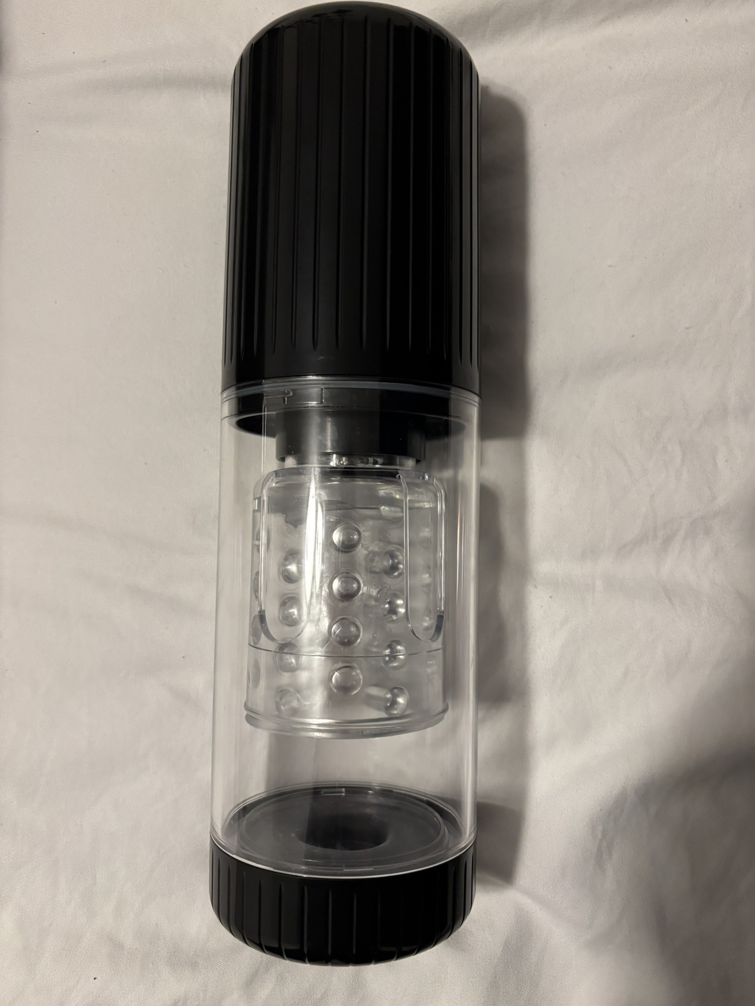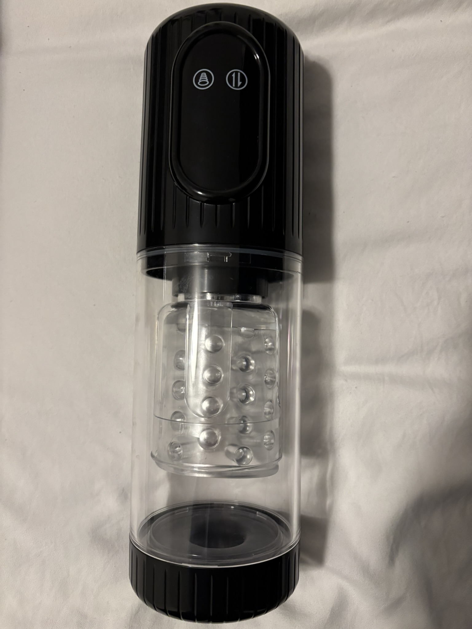The suction is generated by a vacuum inside the entire container rather than directly on the sleeve itself. While it creates a decent suction, it feels less authentic compared to devices that focus the vacuum directly on the stimulation area. As a result, the sensation can feel a bit less realistic and more like a general pressure rather than precise suction on the most sensitive spots.