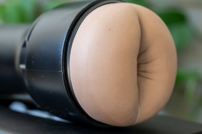 Visually? Pretty hot. The entrance looks like a rounded, sculpted butthole with a hint of cheek framing. Not ultra-realistic like a Fleshlight Girls sleeve, but definitely suggestive enough to trigger your brain. The sleeve sits in a matte black ABS case with two caps: one on the back with a twist suction control, and a protective front cap that clicks on and off. Standard stuff, but it feels solid in hand.