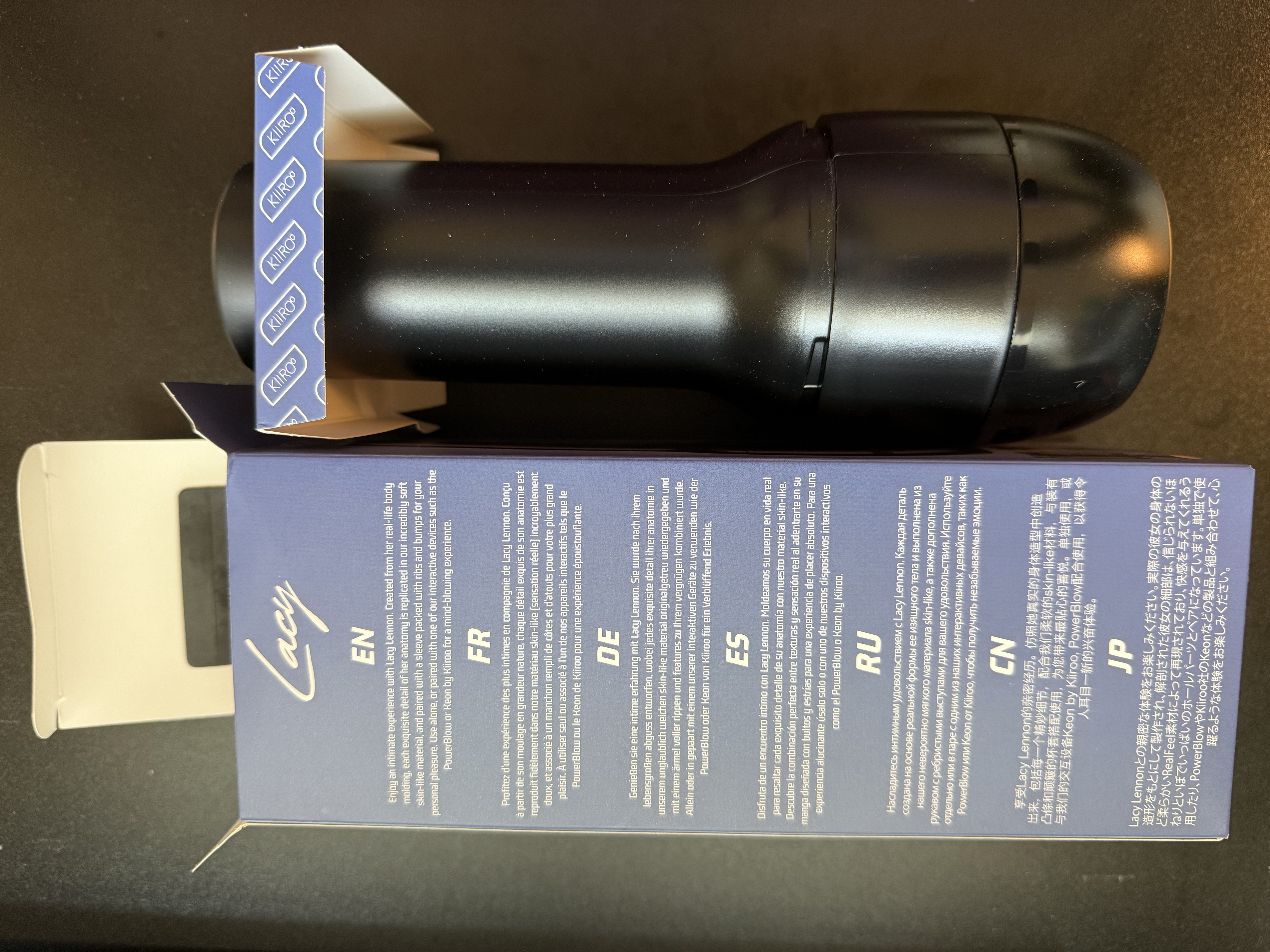 The packaging was quite simple, just the main cardboard box with an images of Lacy Lennon, the design, and texture of the stroker on the outside, and then a square piece of cardboard to hold the stroker straight in the box. It's incredibly simple and not the most premium feeling, especially considering it arrive a little beat up, but the stroker and casing came without any damage so I can't complain too much.