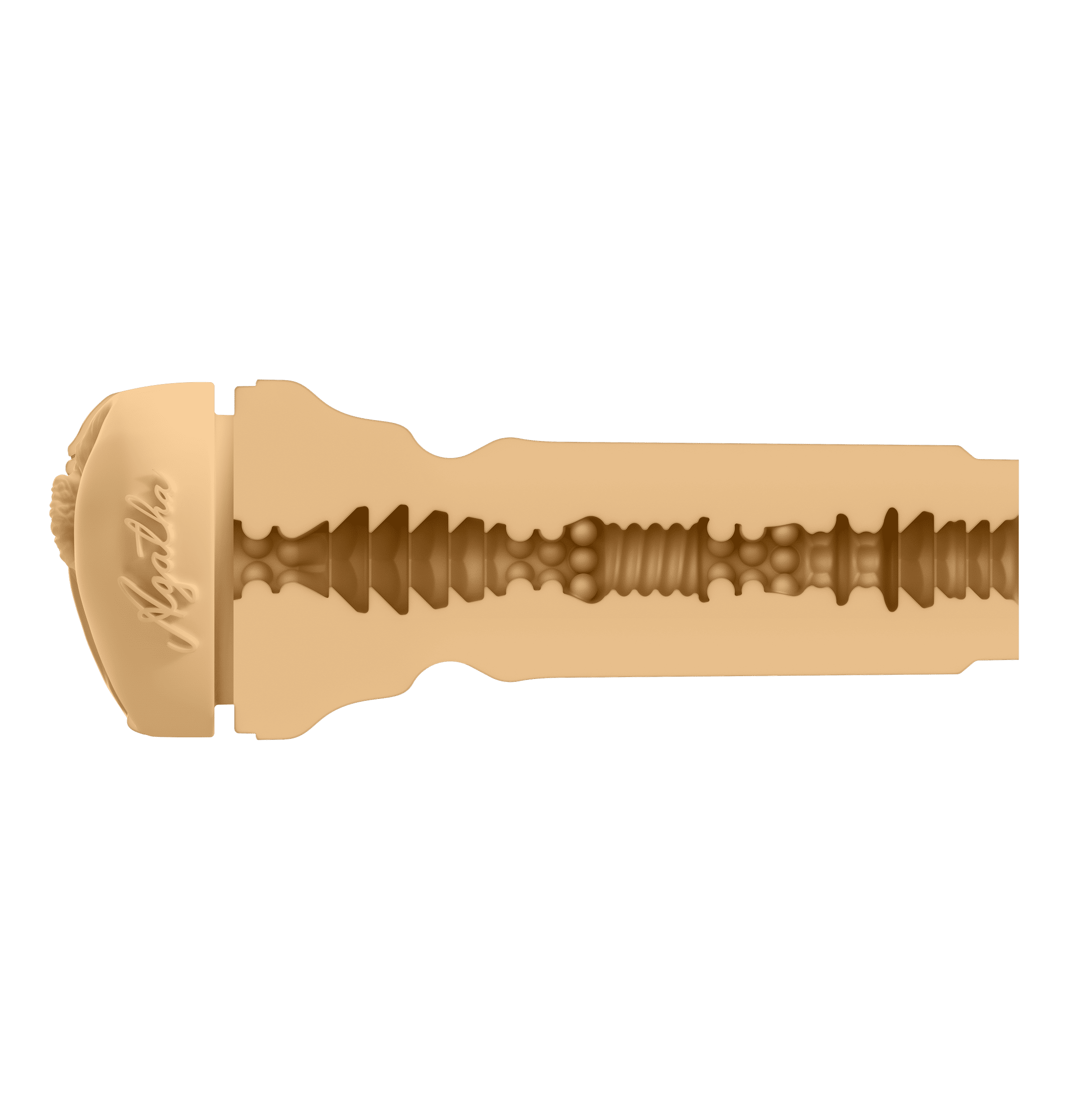 Agatha just really wants to squeeze the shaft here...After a very tight opening, your met with a small ball shaped pocket, so you get this sensation of the penis being gripped by the opening, a short section of relief followed by a series of nubs and angled forms that amplify the resistance / tightness as you push through them. On the removal stroke, due to the angle there is less pressure, giving the sleeve an almost dynamic quality. I really enjoyed the feeling of the first section and the way that it hugged the shaft.