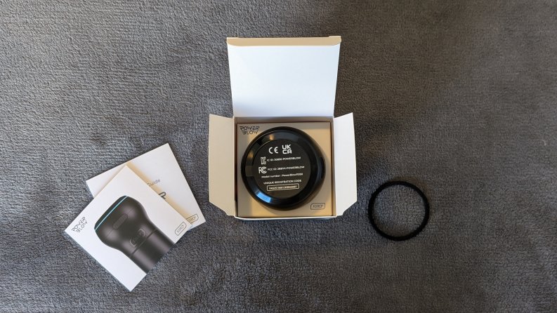 The Power Blow is an add-on device designed for the Kiiroo line of strokers, built to simulate a blowjob-like experience. It attaches directly to the stroker body and integrates seamlessly with the system, extending its functionality with strong, rhythmic suction. The unit itself is constructed from sturdy black ABS plastic with a sleek, matte finish that matches the stroker’s body. It feels solid in the hand and blends well aesthetically, keeping with Kiiroo’s modern look.