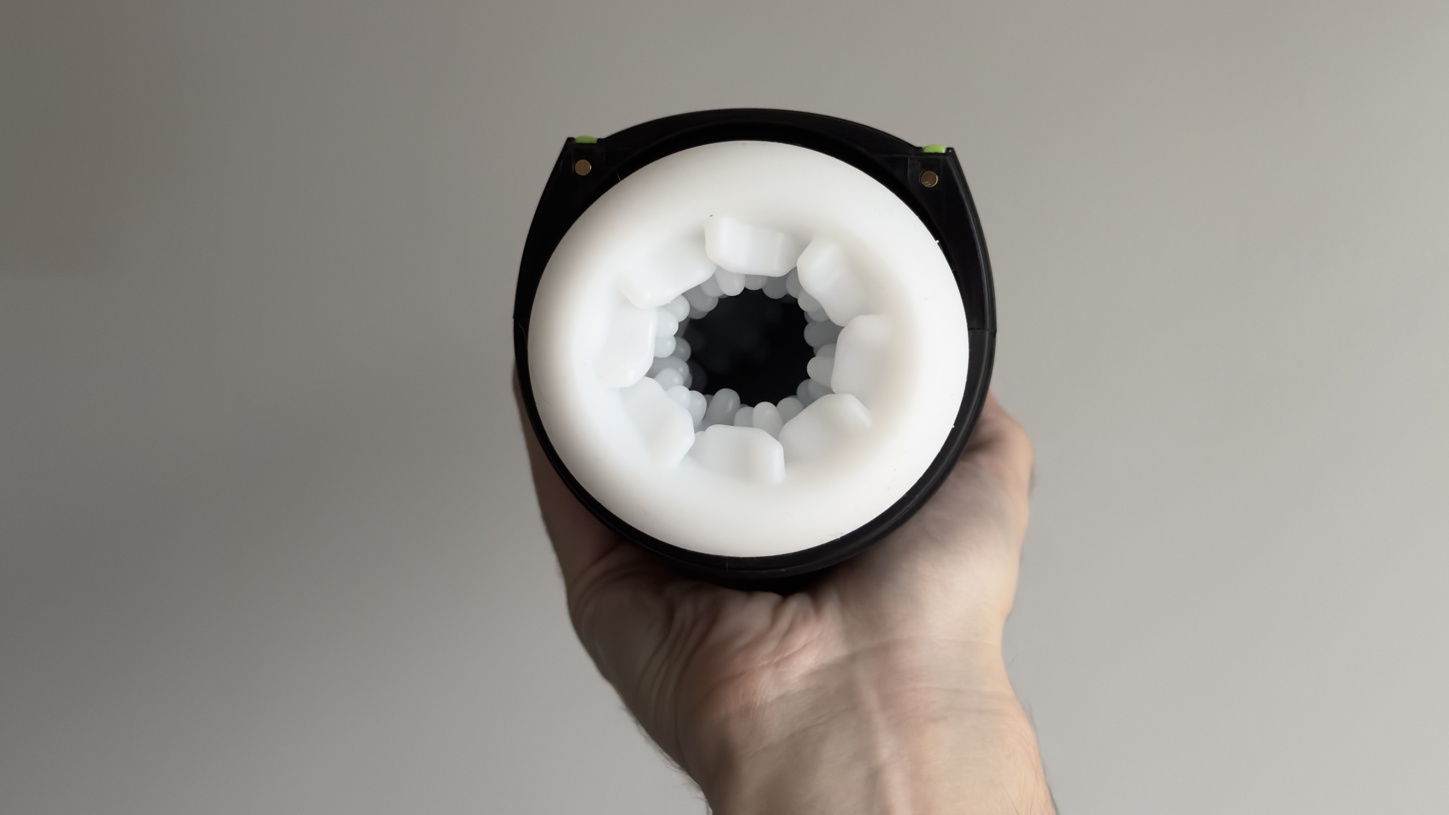 The sleeve texture is very well designed and is made to grip your member tightly for the highest sensations. Everything from the beginning nodules to the ripples in the middle, is there for a reason, and you feel it all. Unfortunately the thrusting distance is very short at ~2 inches.