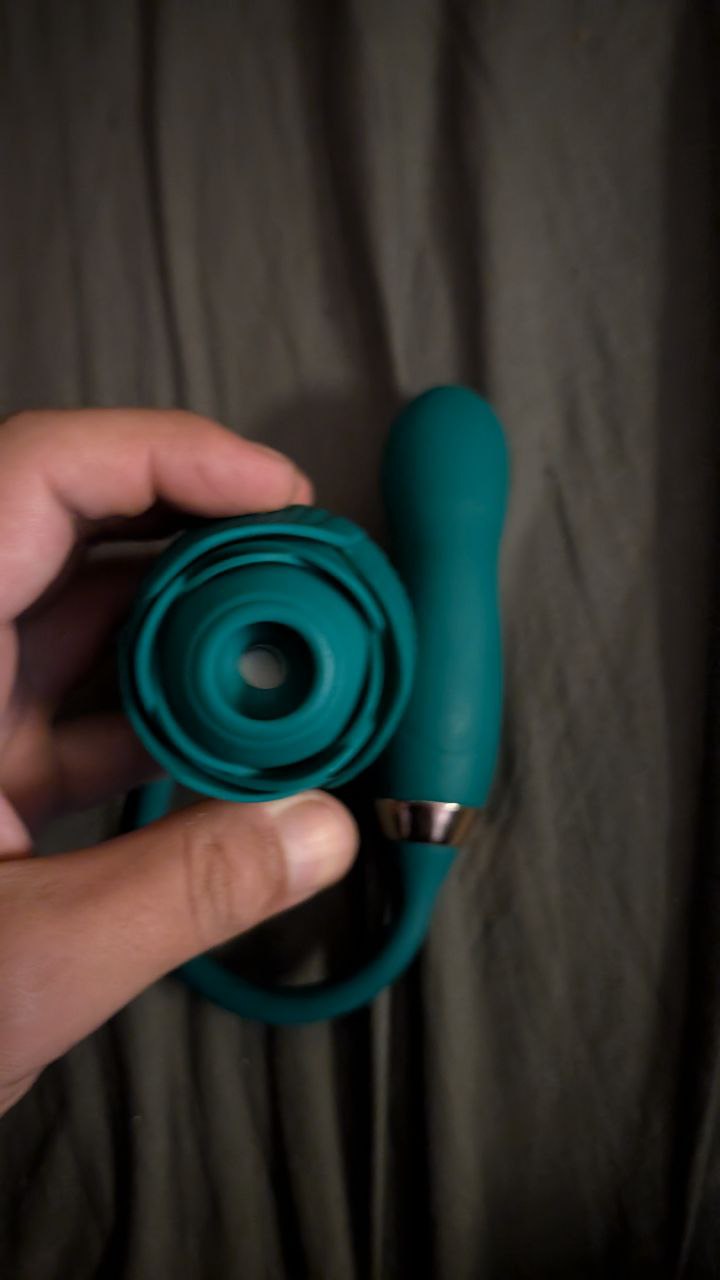 Made from soft, body-safe silicone with ABS detailing, the toy feels sturdy and well-finished. The rosebud bulb is lightweight yet solid in hand, and the long stem makes it easy to maneuver. The only drawback is the thinner silicone covering at the finger’s joint, which can pinch slightly during tighter insertions.