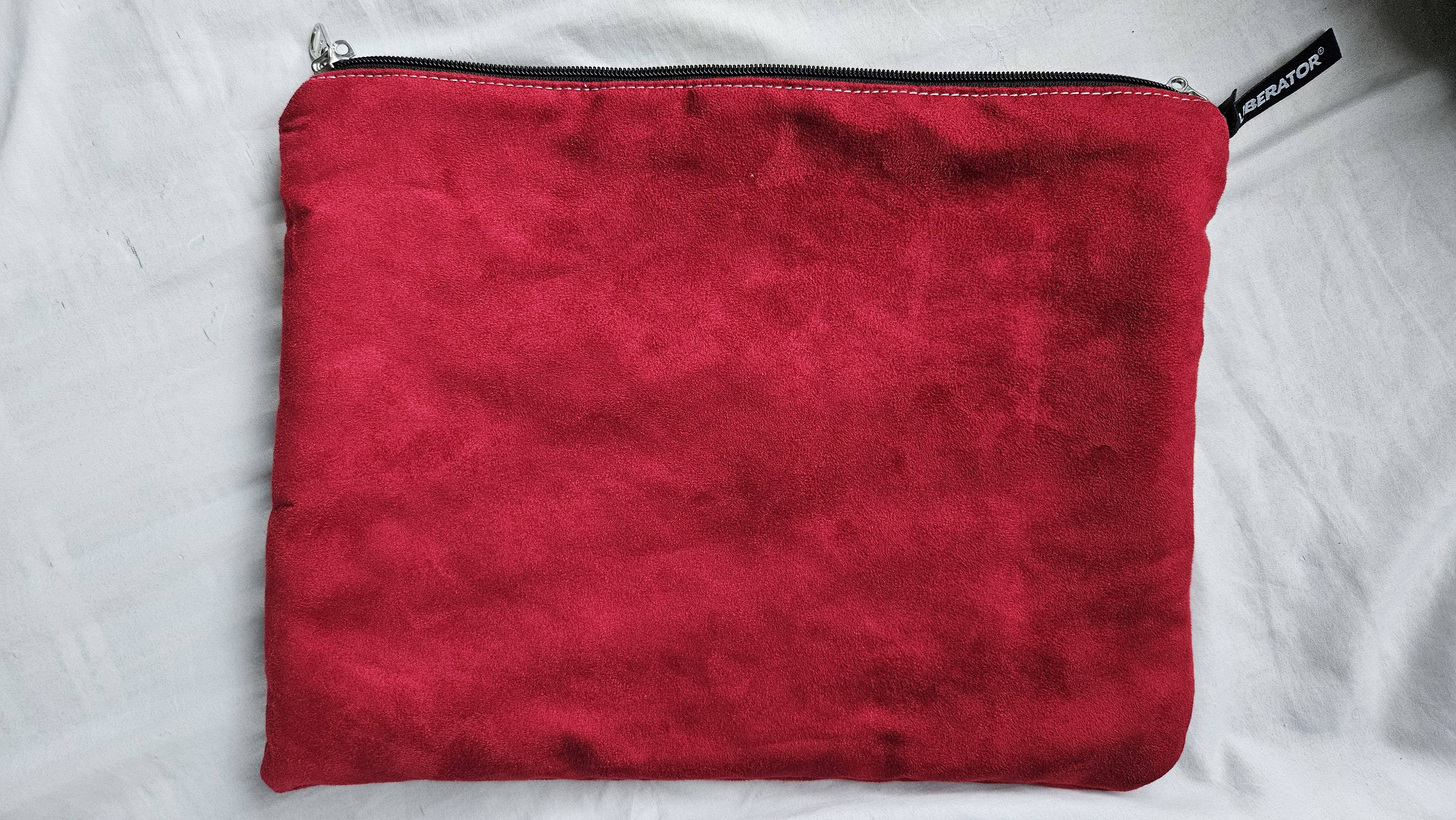 The Liberator Zappa Toy Bag in Cherry immediately grabs attention with its rich, vibrant microsuede exterior. That deep cherry color paired with subtle topstitching makes the bag feel playful and luxurious at the same time—it’s more than just a storage bag; it’s a stylish little accessory. Measuring 13.5" x 11", it’s big enough to fit a variety of toys, from small vibrators to a mini Liberator blanket, but still flexible enough to pack easily for trips or store neatly at home.
