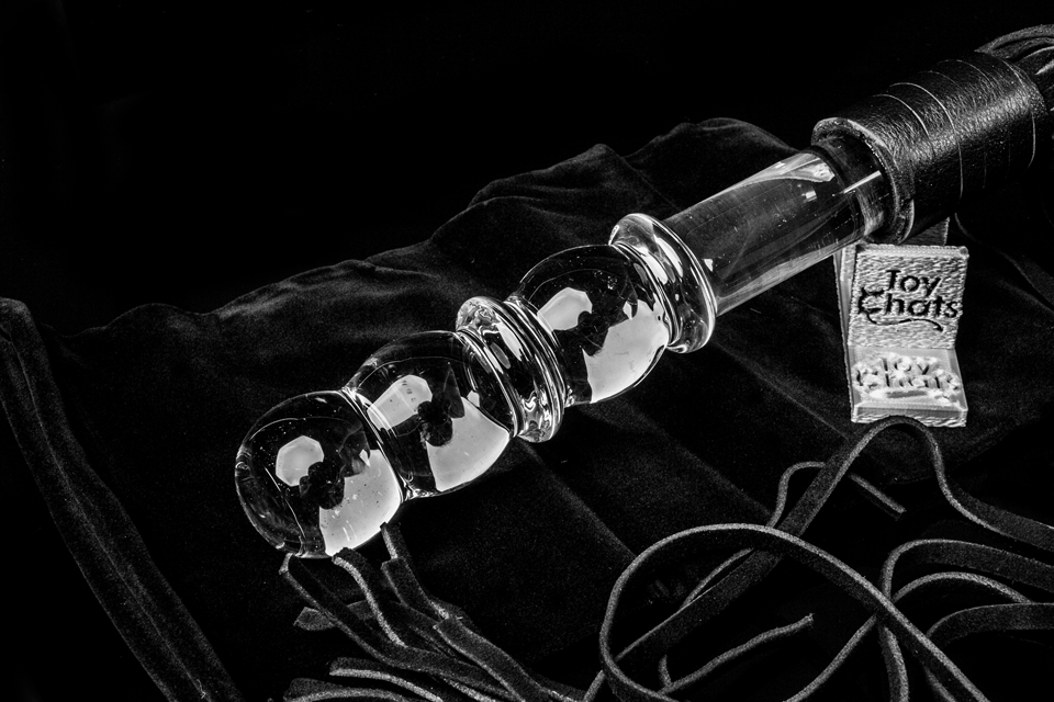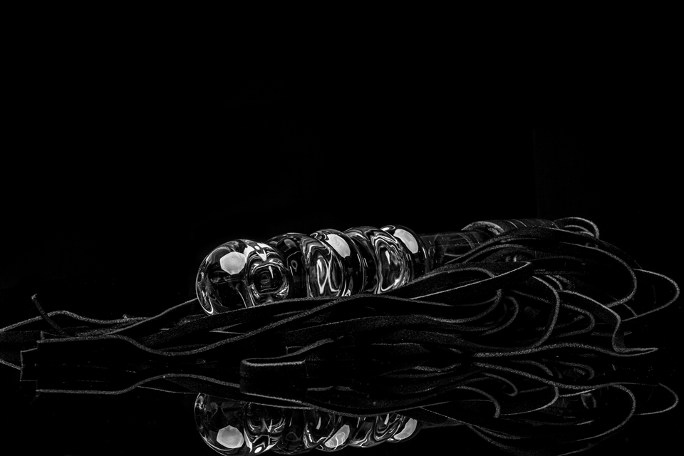 Material: Tempered/annealed glass (preferably borosilicate glass, for safety and strength), with suede (or soft-fall) tails for the flogger side.