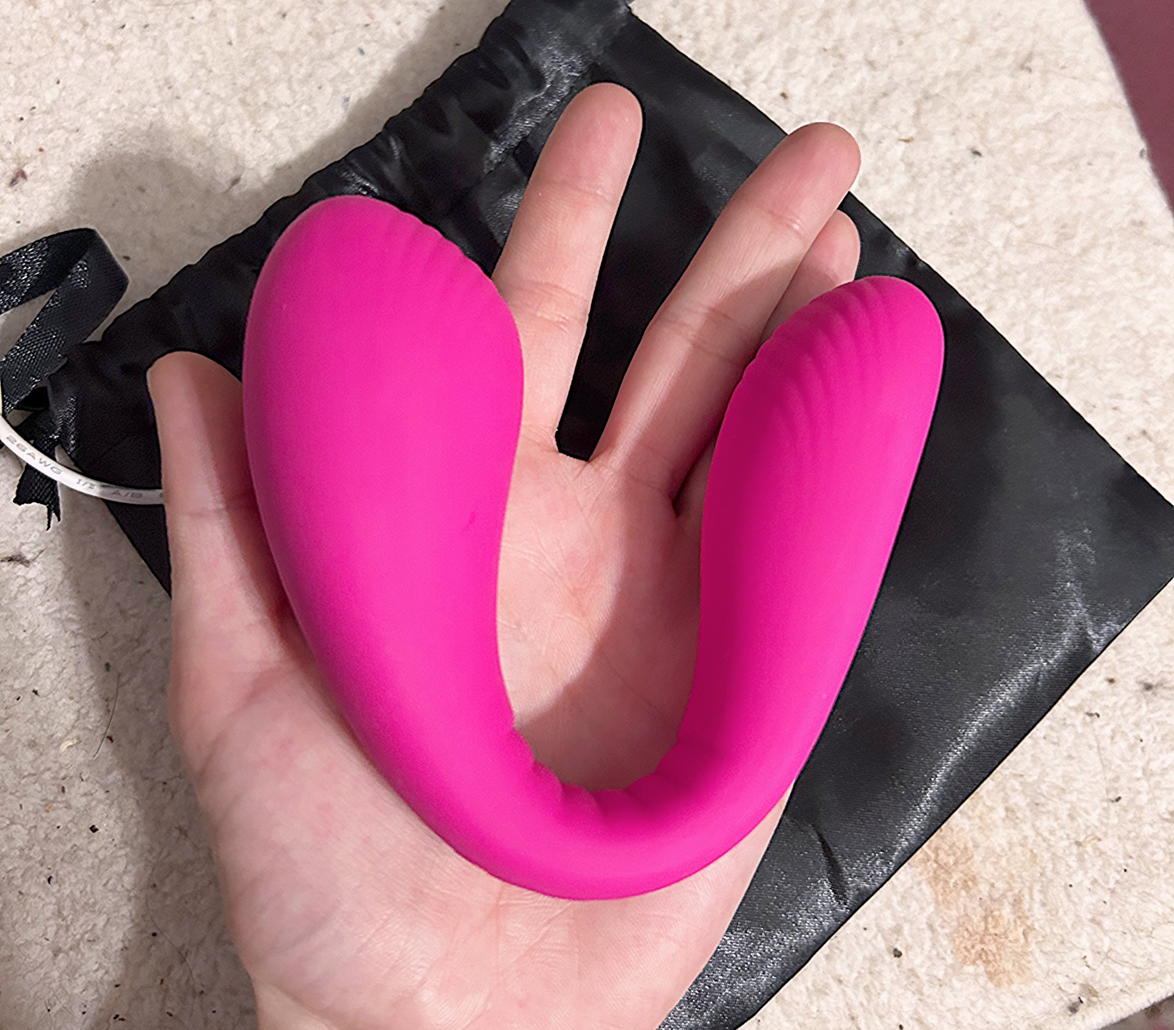 I did like the smooth texture and its shape very much, it felt great and they reach the perfect spots with ease. The g-spot tip was the perfect size and the curves were particularly spot on I found but I didn’t have the same experience with the other one unfortunately, as I thought the clit extremity could have been a little softer. I had a hard time adjusting the toy the first time as it was not so flexible but after a second, it did felt better. About the vibrant pink colour that it has, I think it is a bit too bright to my liking, I would have preferred more options for those who do enjoy to wear their toys outside, in public or who would simply rather a more neutral aesthetic. On the same note, the size was a little bigger than I originally expected and it was a tad heavier but I was amazed by how surprisingly subtle and comfortable the toy felt to wear, I think the size and the weight is only a good sign of the toy’s extremely good quality after having testing it.