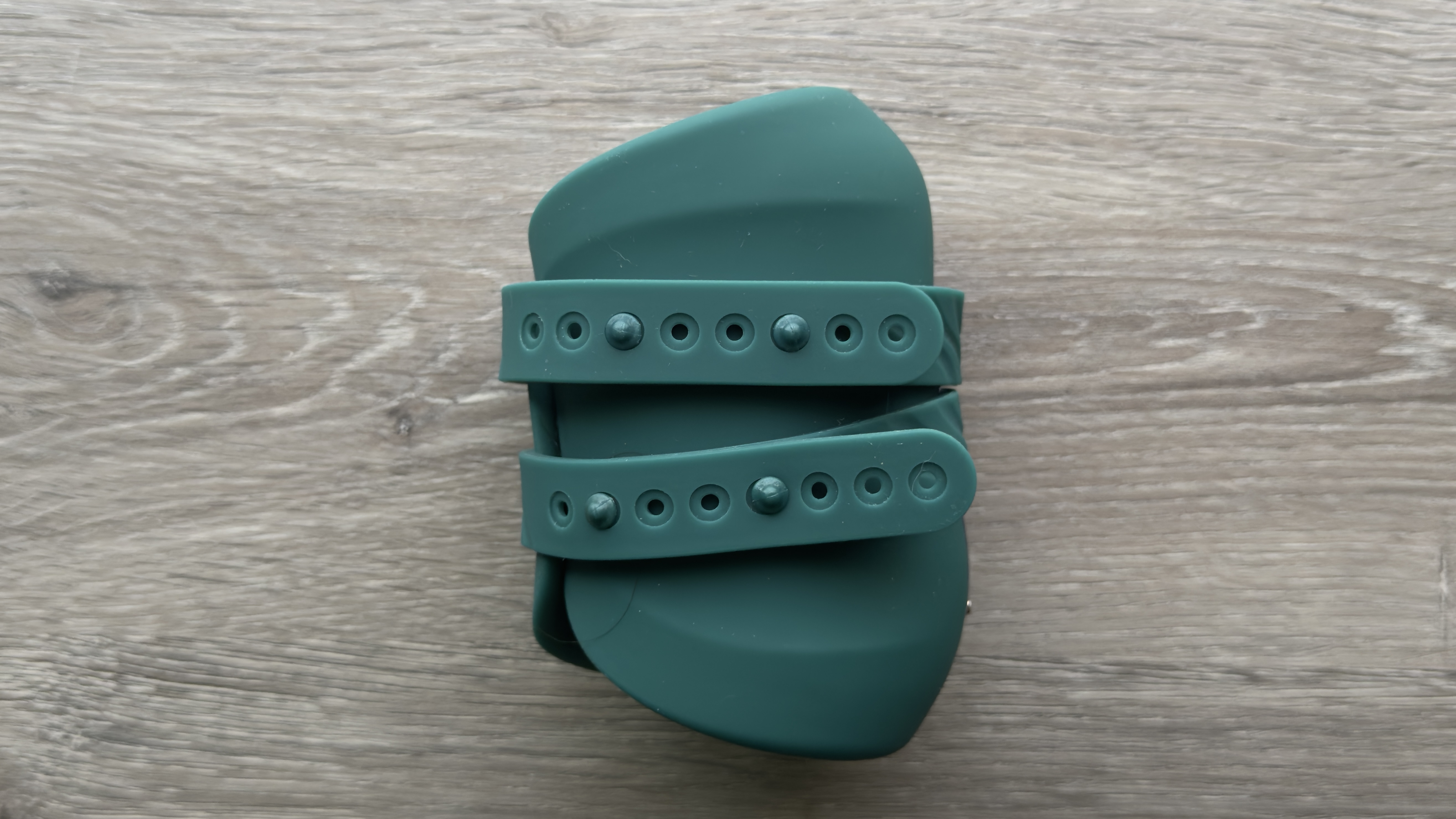 The color is a nice hue and looks fantastic. Both of the provided straps for hands-free play are the same color and material. One notable downside is the button placement to cycle power and patterns is placed a bit awkwardly, and I hit it accidentally during use often.