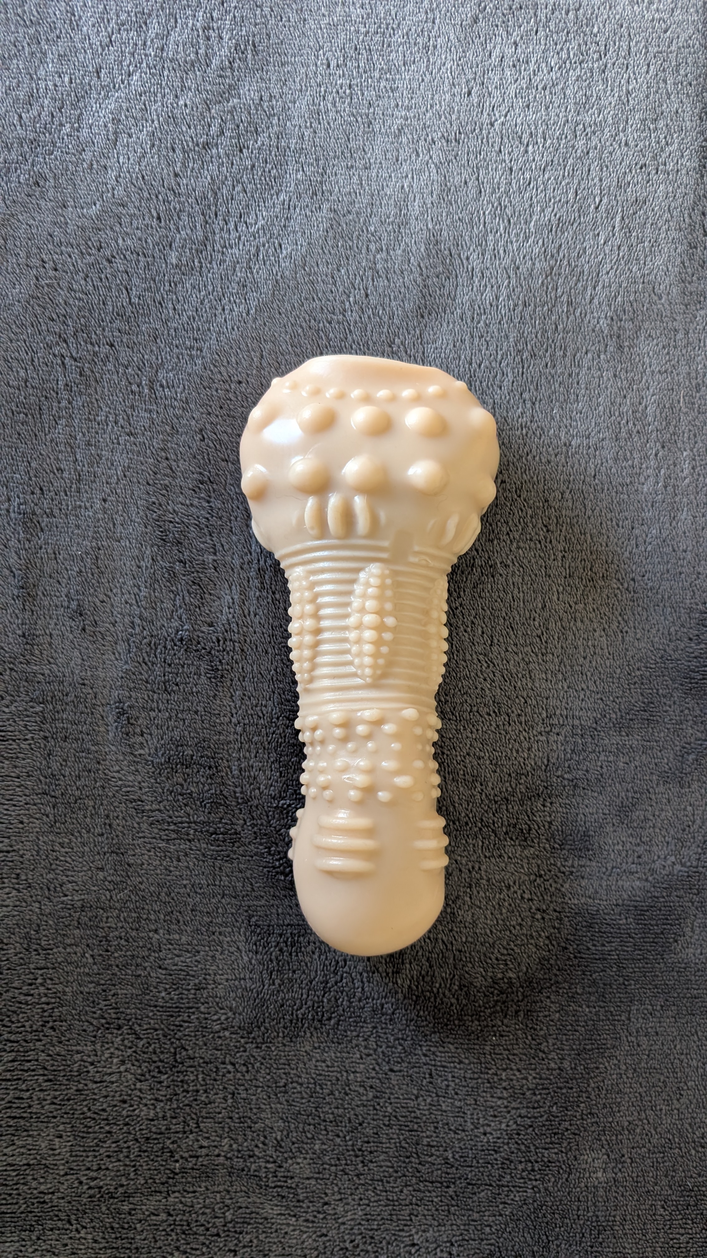 The sleeve itself. It does not match the anatomical details of other strokers, but its also not trying to. there is a vague sculpt that includes the clitoris and labia majora, but its so discrete that it might as well have not been there at all. The material is otherwise nice and soft with a nice springiness to it.