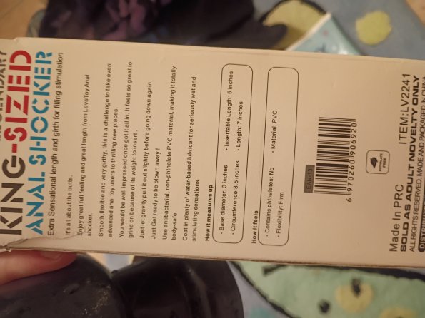 It's a very basic box with just a little more than the picture of the massive butt plug. The sides of the box look pretty cute but they are still quite plain especially in comparison to some other sex toy boxes I have seen. The packaging was very discreet and despite the fact that I am not showing it here it was originally I do delivered in discreet plastic wrapping.