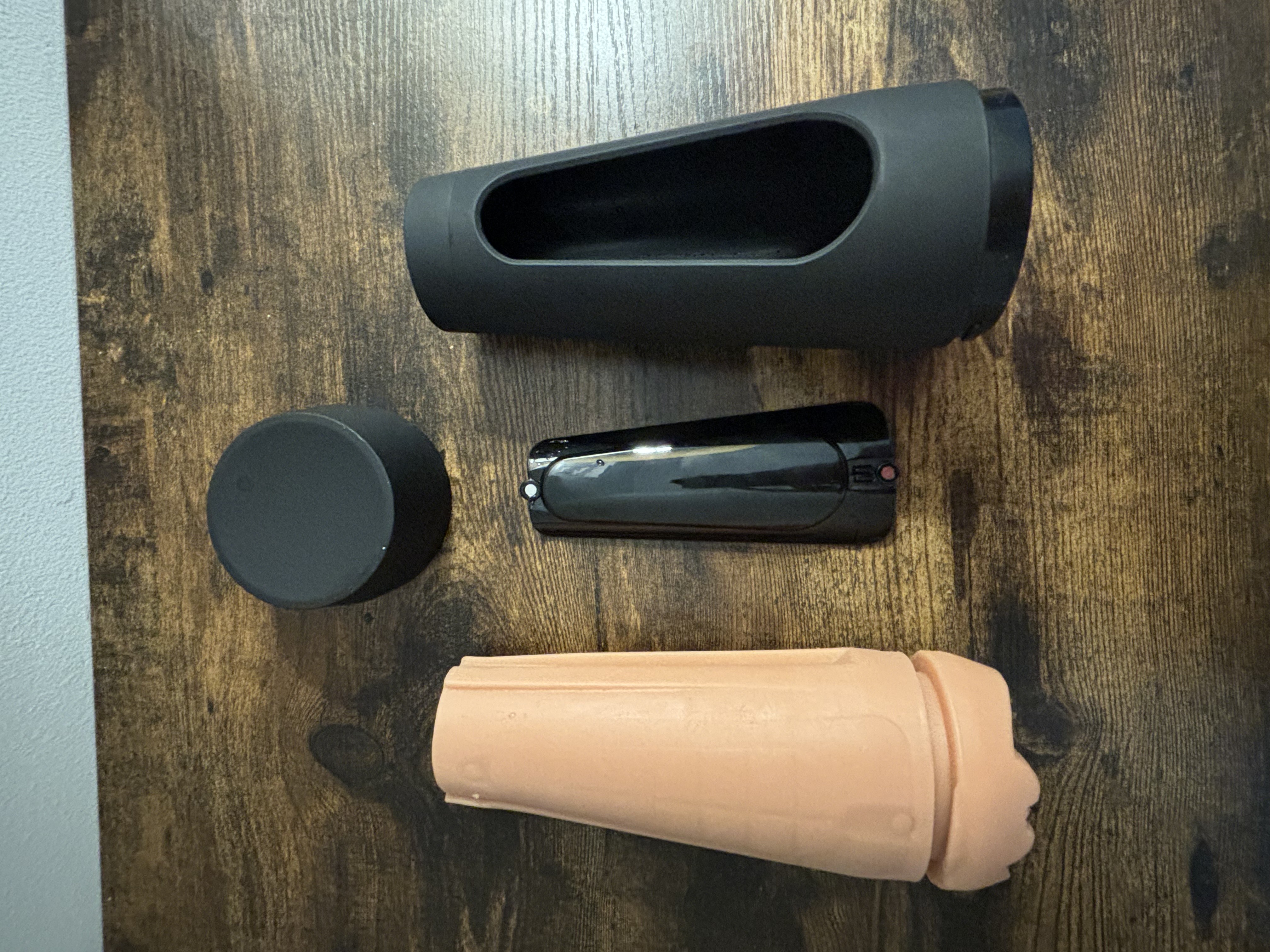 After play remove the sleeve from the case and detach all the parts of the outer case. I like to get done with the difficult part first - the sleeve. Once out rinse the case with warm water and use a toy cleaner or even your dish soap - yes a dish soap (just make sure it does not have silicone). I recently learned the Dawn dish soap's good enough and most importantly safe for the job - I just learned this on the ToyChats Forum. If you’re curious about tips, tricks, and experiences, join the Forum. Let the sleeve dry on clean surface as the Ultraskyn picks up on lint around. To make the whole drying process faster and completely dry the internal canal I use de-humidifying rods. Cleaning the outer case is the easier part, a little soapy water should do the job.