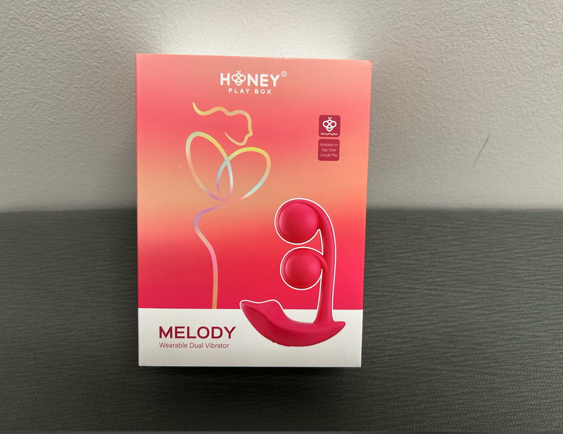 Unboxing Melody was a standard sex toy delivery experience. The toy isn't discreet—the box clearly states what it is on the front. The cover features an image of the toy, the Honey Play Box logo, and information on how to access the app controls. What I did appreciate is that the side of the box includes a quote that says "designed with your joy in mind." That direct nod to customer engagement really adds a personable touch to the packaging. Melody came fully equipped with a charger, user manual, and carrying case.