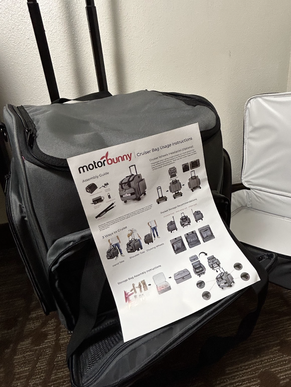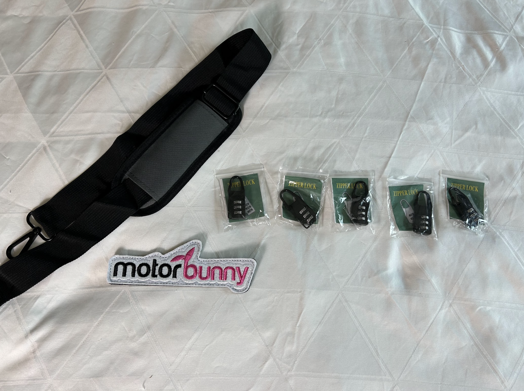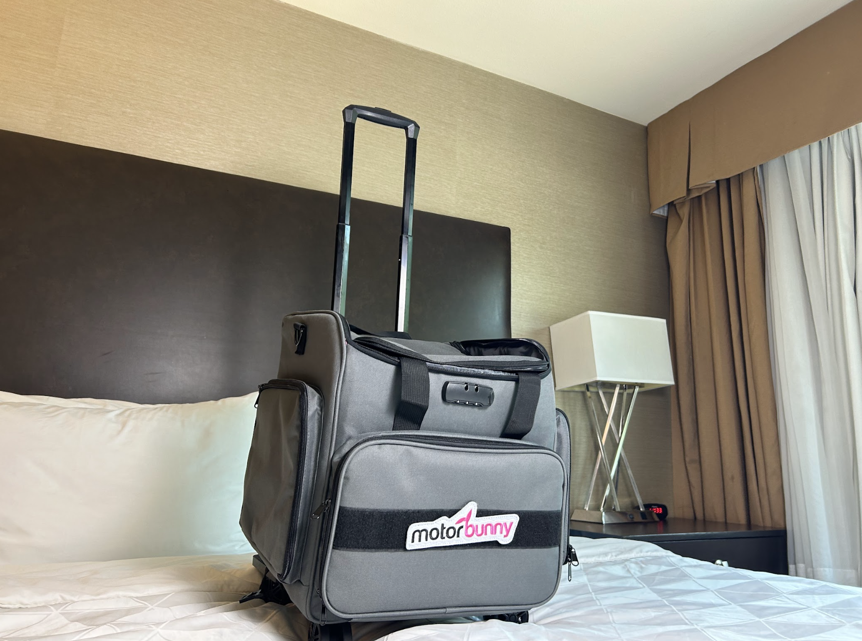 I got the the grey Motorbunny Cruiser, and it is a fairly small size. When traveling it can be used as a carry-on for flights. For reference it is roughly 11 pounds, and fits like a small suitcase. The design is professional looking and a little flirty with the logo on the front. What is great about the design is that you can customize it by taking off the removable logo from the front to add a touch of discreetness when transporting the goods.