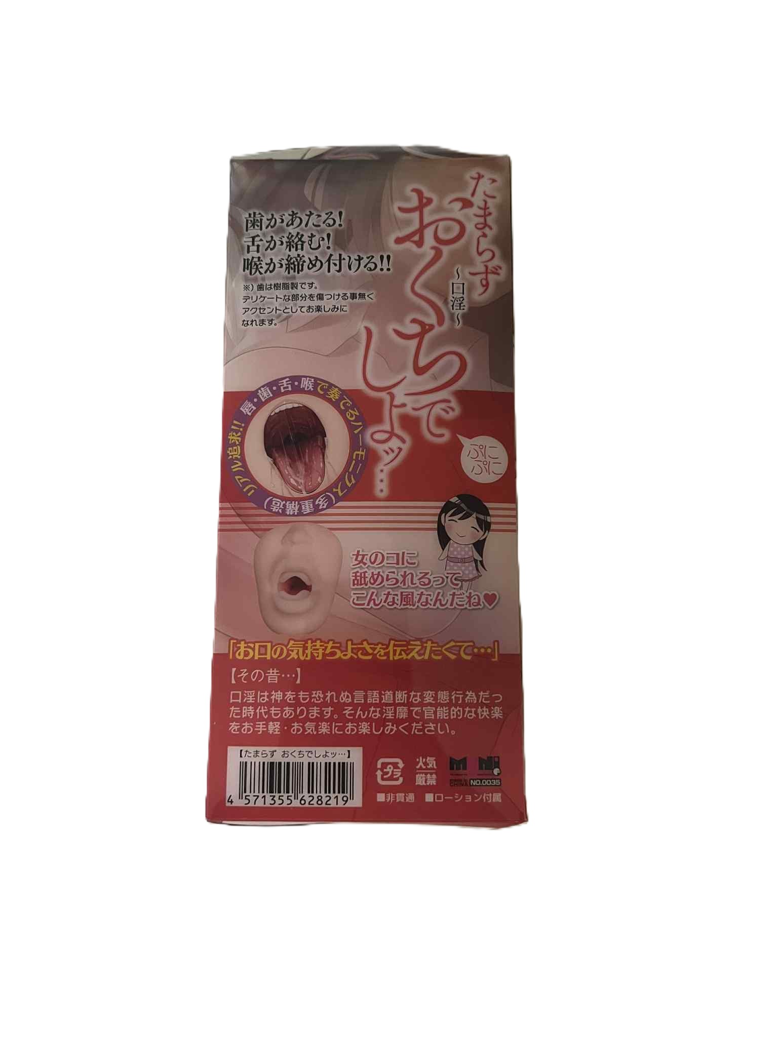 The outer packaging of the Lip Doll features detailed, full-color images and product diagrams, all labeled in Japanese, giving users a clear visual idea of what to expect before unboxing. Inside, the toy comes neatly wrapped for protection and includes a small packet of lubricant to get started. However, there are no included instructions, which might leave first-time users guessing about care or cleaning, especially if they’re unfamiliar with onaholes.