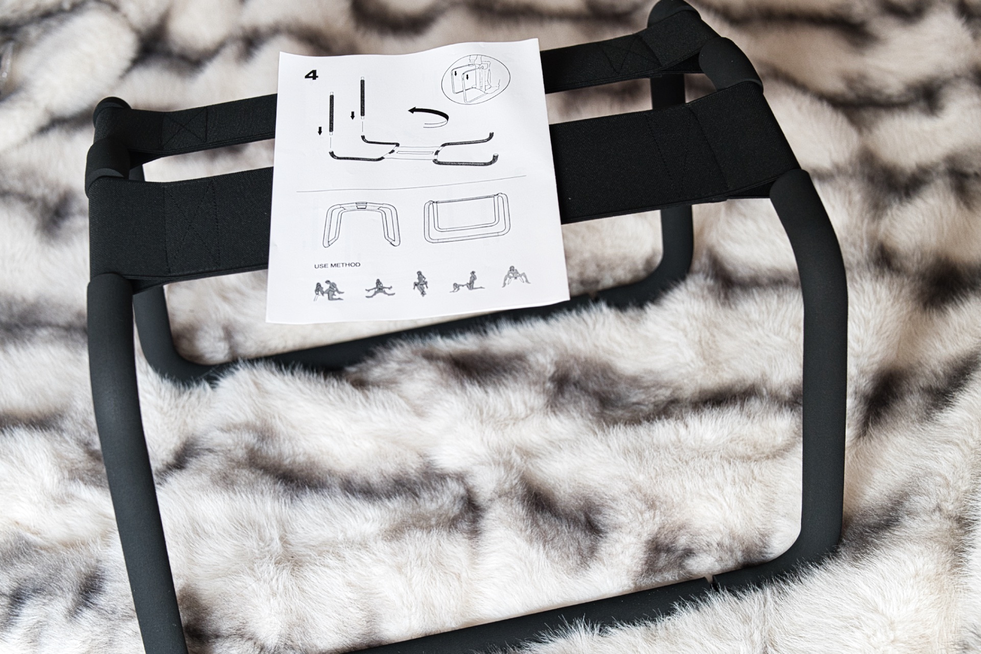 Lastly, the manual shows a simple image of the receiver sitting on the stool. This must be the "do it yourself" position, because the partner was seemingly forgotten from this one. Am I supposed to just... watch? Either way, she couldn’t hold this for long; again, the fabric straps meant her bum sank through, and the strain on her arms was unworkable.
