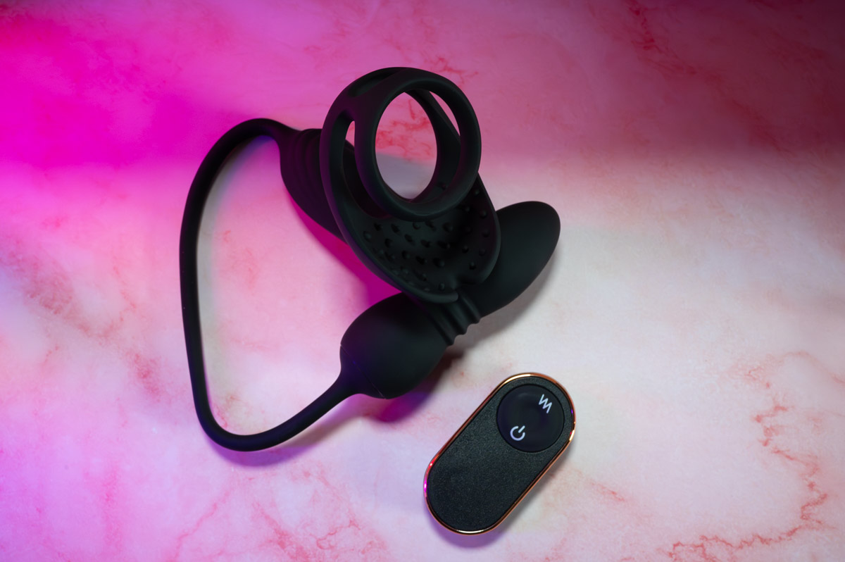 This toy caught my eye as someone who wanted a cock ring AND a prostate massager at the same time. A trusting plug connected to a cock ring that vibrates on my balls sounded like a good match! When I received this toy, I was fairly quick to unpack it to get the photos so I could give it a try.