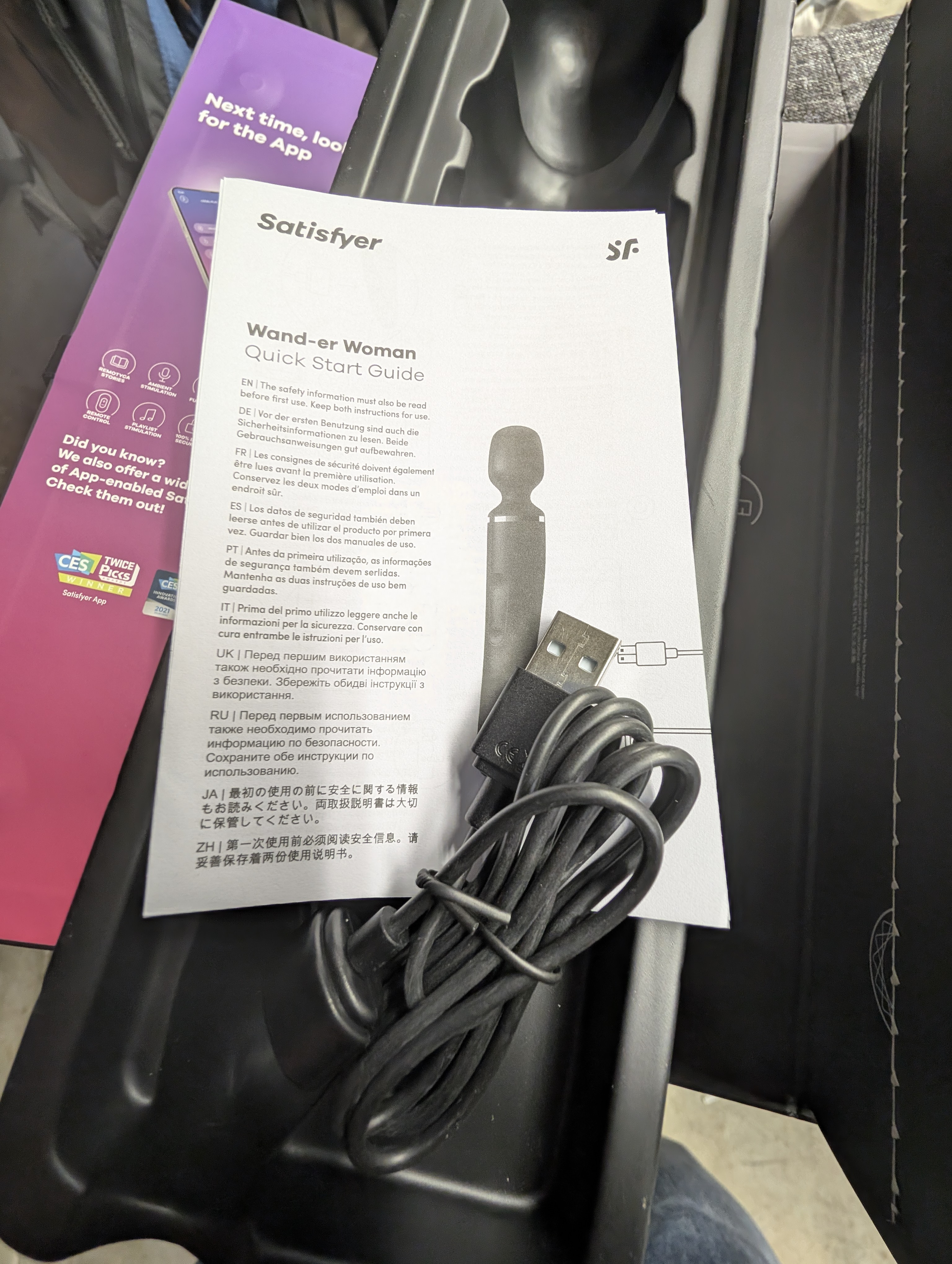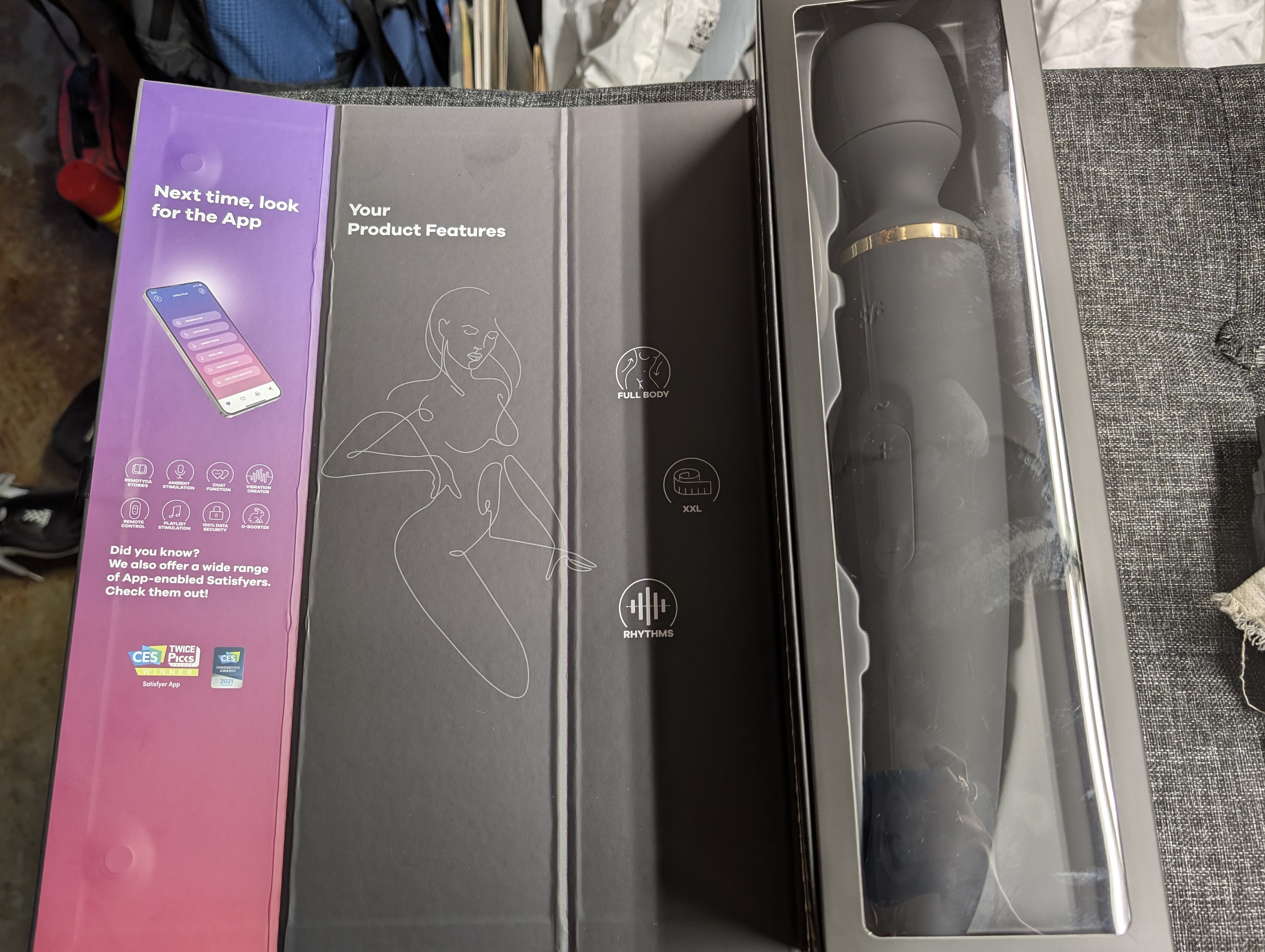One area where Satisfyer consistently shines is presentation, and the Wand-er Woman is no exception. It arrives in a sturdy, modern-looking box with tasteful graphics and branding. Instead of garish or overly sexualized imagery, the design is sleek, colorful, and a little playful — which makes it feel approachable whether you’re new to toys or a seasoned collector.