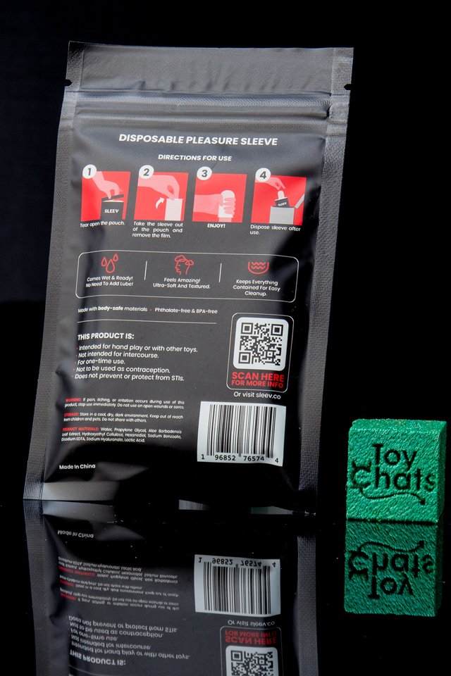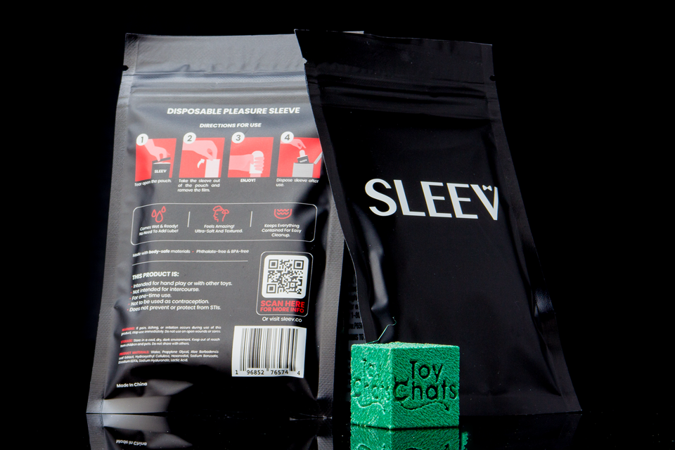 The Sleev Pleasure Sleeves are crafted from a soft, stretchable, body-safe material, free from phthalates and hypoallergenic. They are non-porous, making them safe for direct skin contact and easy to dispose of after use.