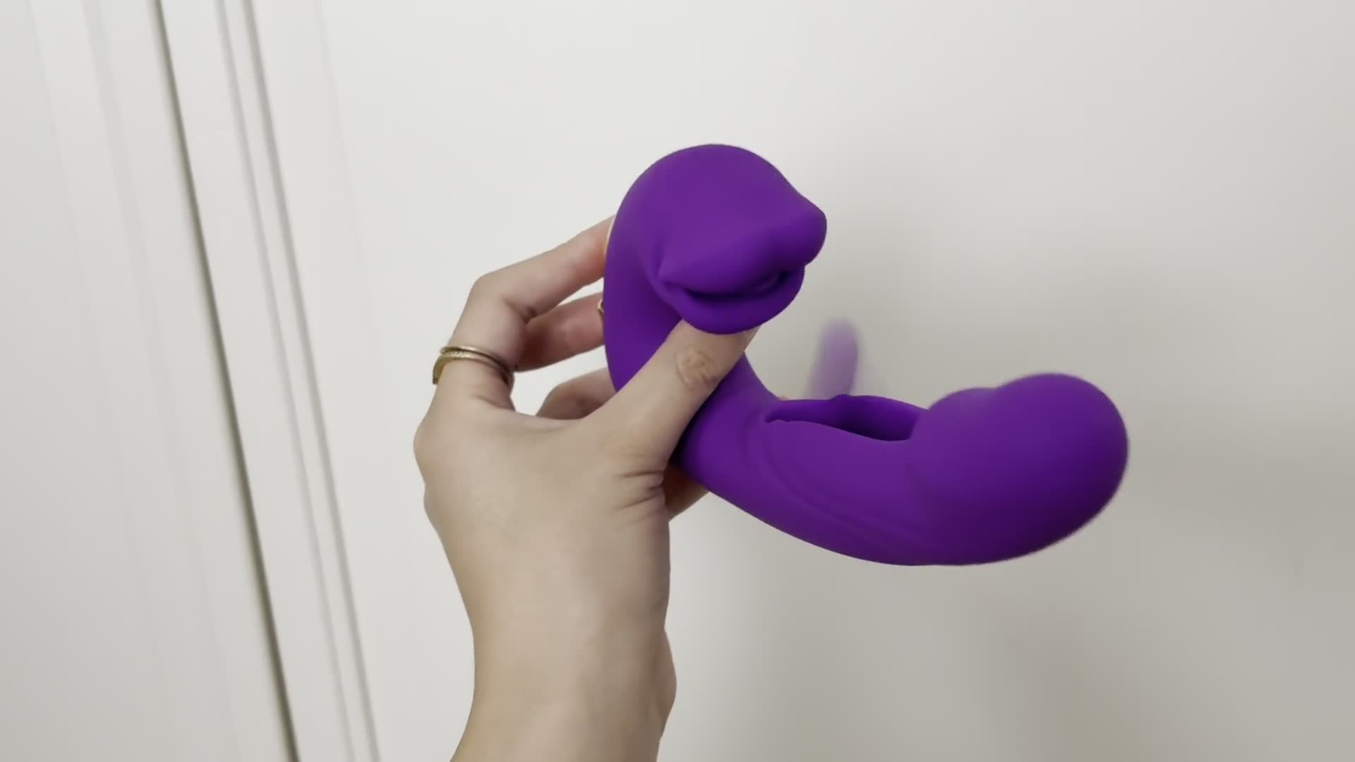 The design of the toy is super elegant, as it features a clit sucking lip function that is shaped like a mouth, and a dildo is equipped on the opposite end with a flapping appendage. This is my first toy which includes a clit sucker in the shape of a mouth. Before even using the toy, the design was something that I took note of. It is absolutely mesmerizing, and it looks like some true craftsmanship and effort was put into this toy to create such a striking appearance.