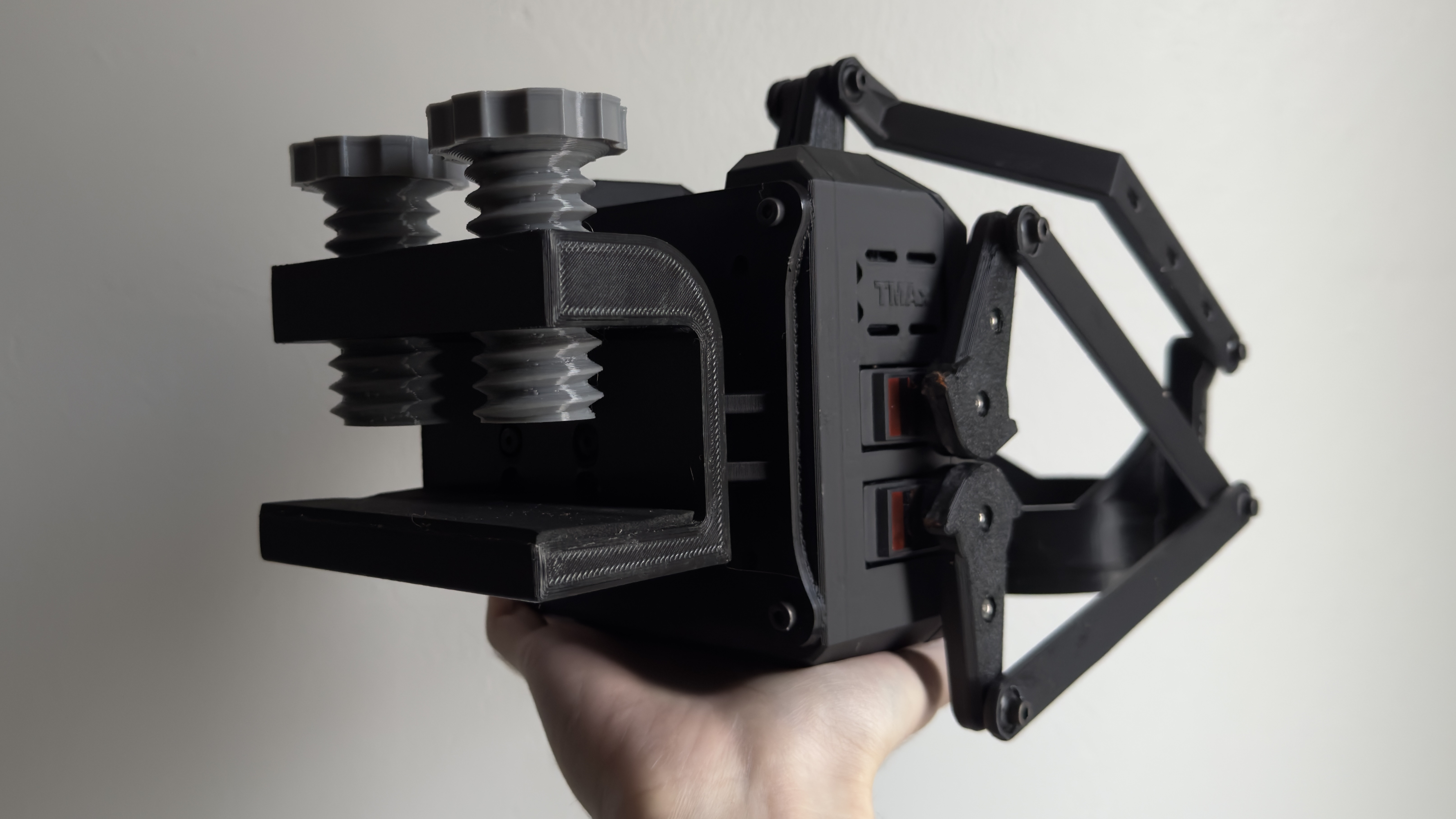The included desk-mount mounts securely and without issues. Other mounts can be purchased, or made. The method of power being wall-power allows for very long sessions if you’d like. There’s also an included integrated fan that keeps the servos cool during use.