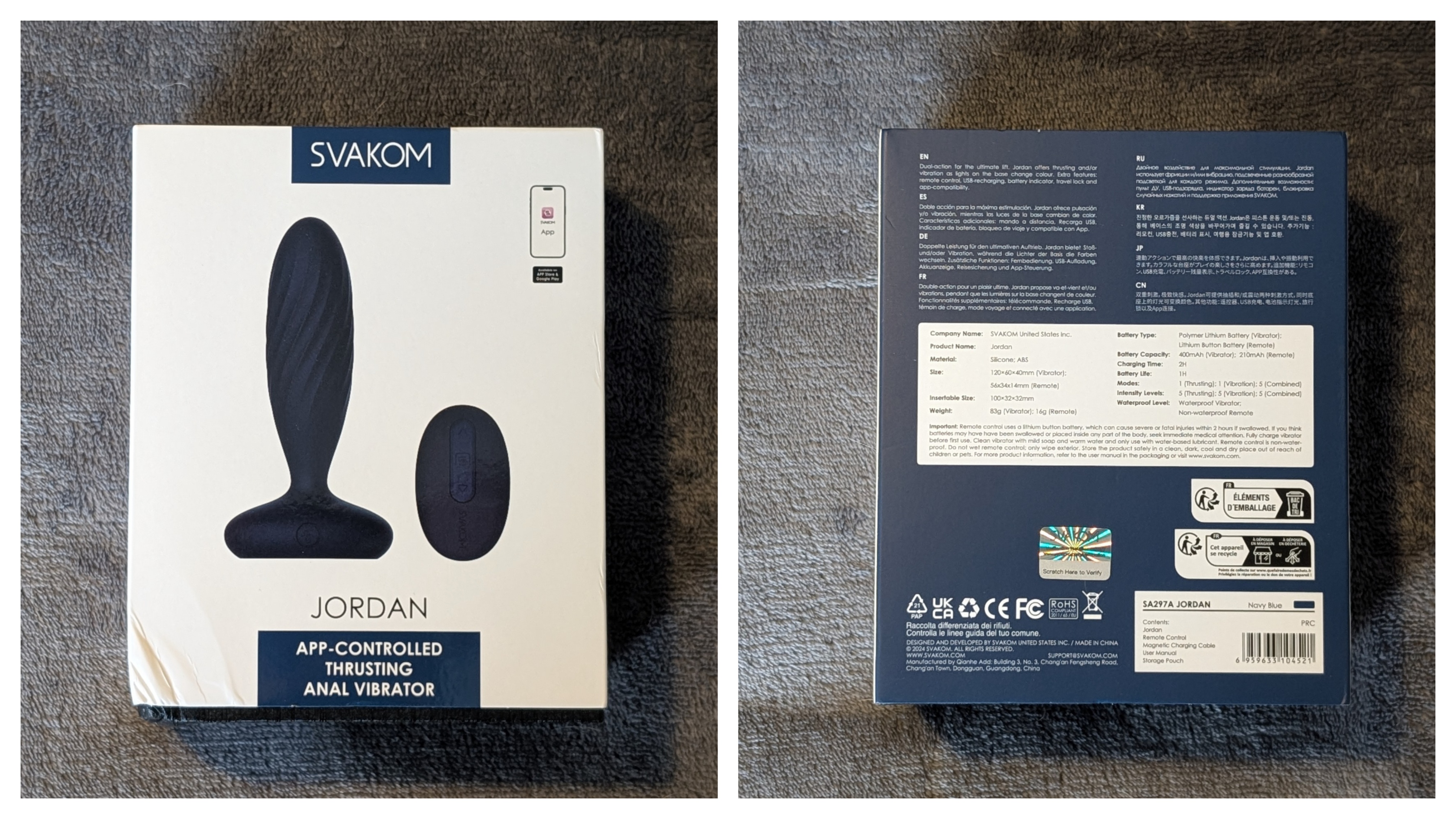The Svakom Jordan is a slim, dark blue plug made of ABS plastic coated in a soft, silky smooth body-safe silicone, it features a soft cushioned head and gentle ridges along the length that helped aid with insertion . There are no sharp edges or discomfort points, and overall the build quality feels refined and premium.
