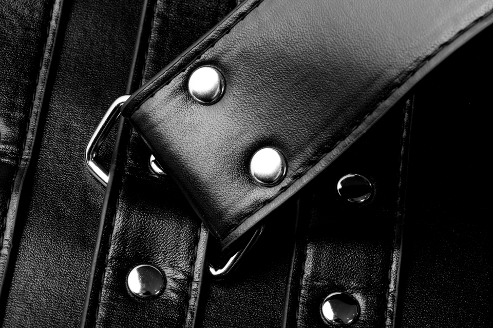 The transition into the binder is itself part of the scene. Sliding the arms behind the back, drawing the sleeve up, buckling the straps — these steps create a ritual that many submissives respond to instantly.