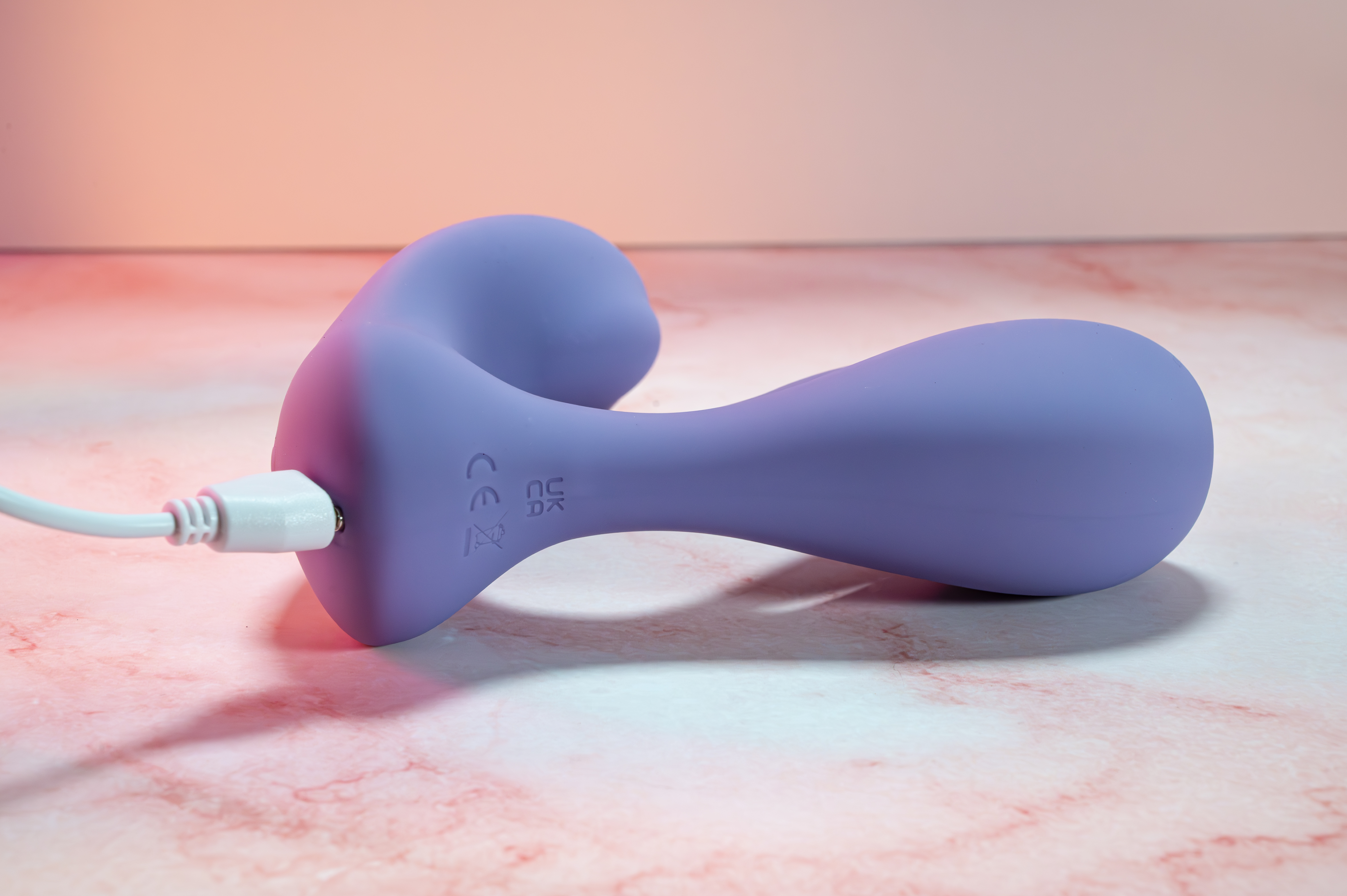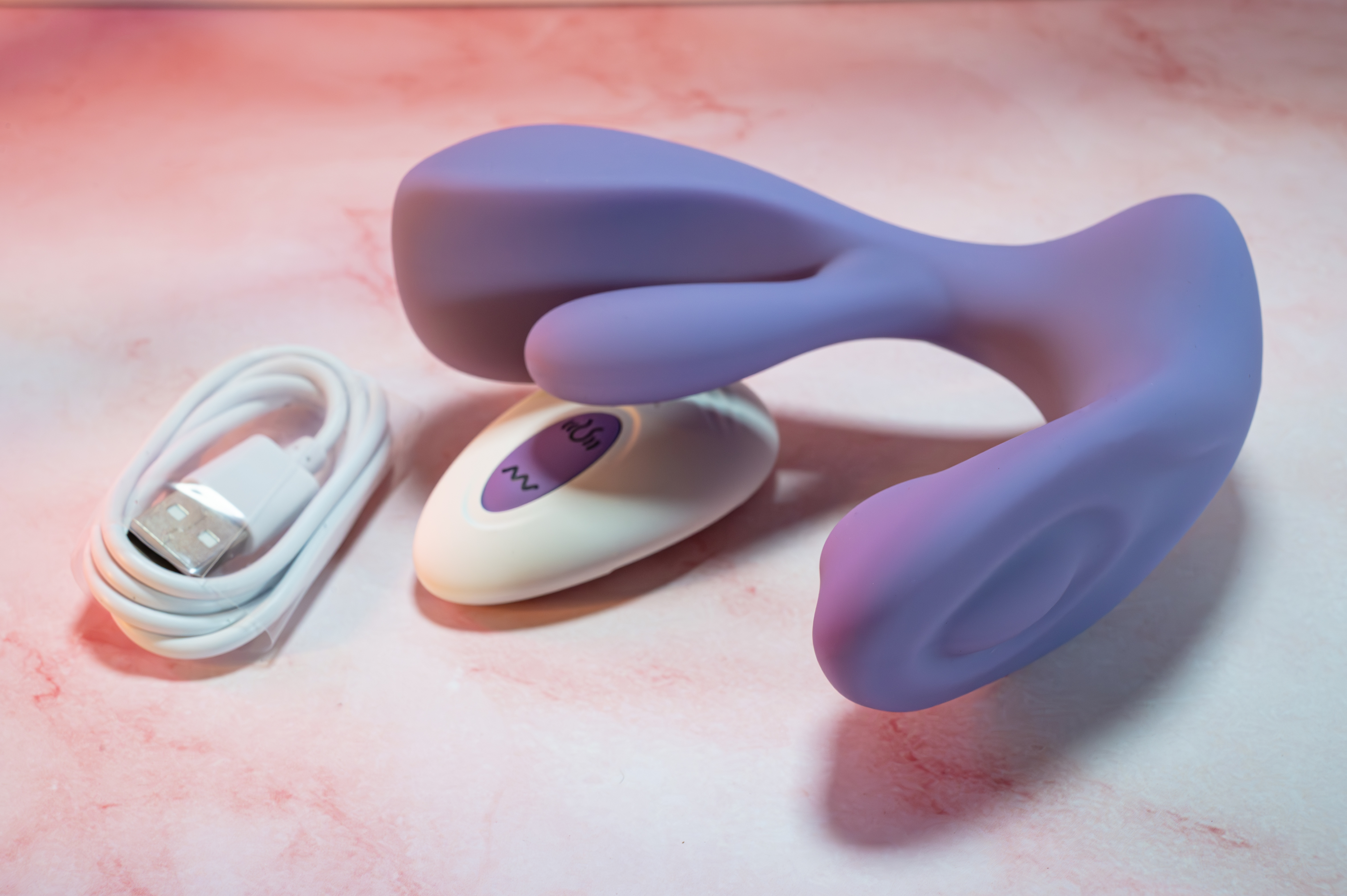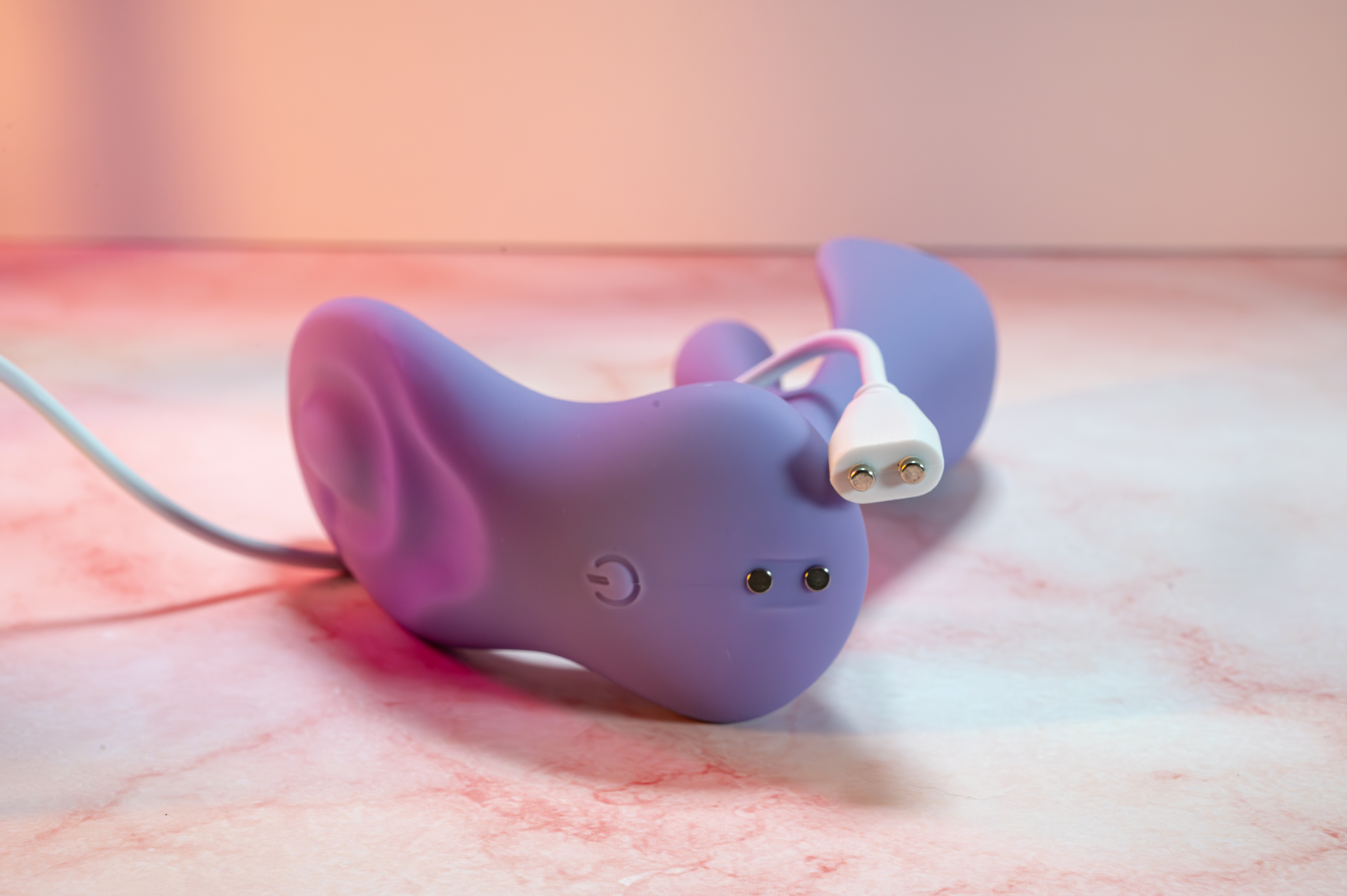 Once we opened the discreet packaging containing the Swirlii, we were met with a soft matte lavender toy that looks as smooth as it feels. The thicker 360° rotating head sits behind the soft and flexible silicone finger and tapers down to the base. At the front of the base, the toy becomes flexible again, which is great for positioning the clit stimulating vibrator where you need it. The remote is fairly standard. It comes with a battery and a pull tab to get power flowing. The charger is a simple USB-A to a magnetic connector. It snaps effortlessly to the toy and charges fully in about 2 hours from dead. The only gripe we have with the design is that the remote has a battery compartment secured by a small screw, which can be a hassle for some.