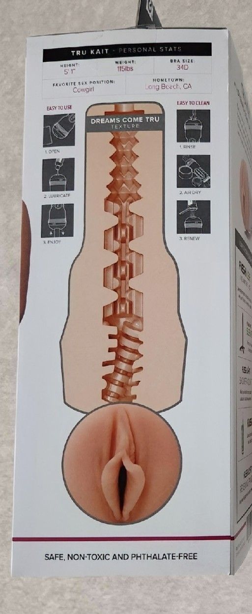 No surprises here the Tru Kait "Dreams Come Tru" Fleshlight design is once again awesome! A member of the Fleshlight Girls series where they give you the chance to fulfill all your fantasies with your favorite pornstars. The high quality design starts with the box as you see Tru Kait looking as hot as ever on the outside of the box, drawing you in to open it and literally let your "dreams come tru."