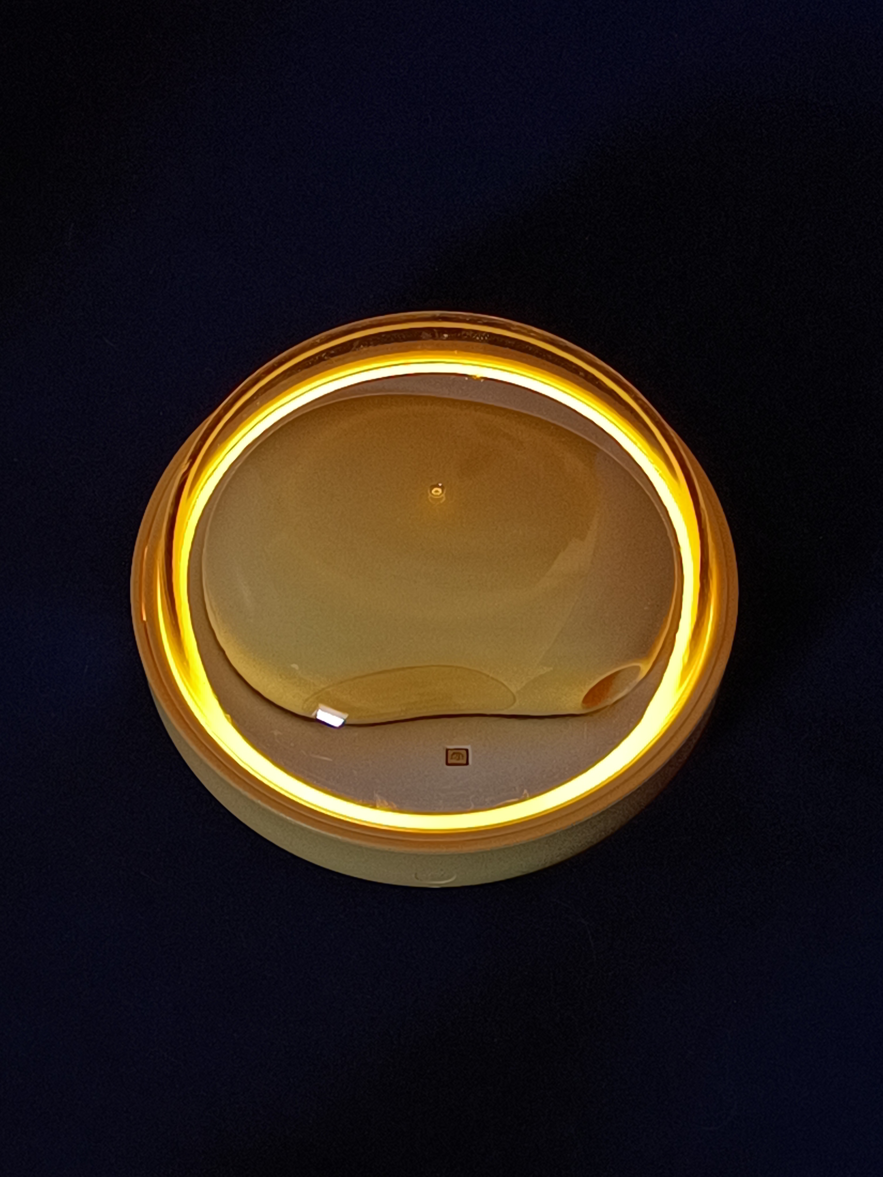 The Bean Pod features an ambient night light that makes you want to curl up in the hull of a YouTube Spaceship Ambience video lol. To turn it on simply pass your finger in front of the pinhole under the sunset shaped icon on the side of the base. Unfortunately, I cannot provide a use time for the feature, but it should more than likely last until you drift off to some sweet space filled dreams. ♥