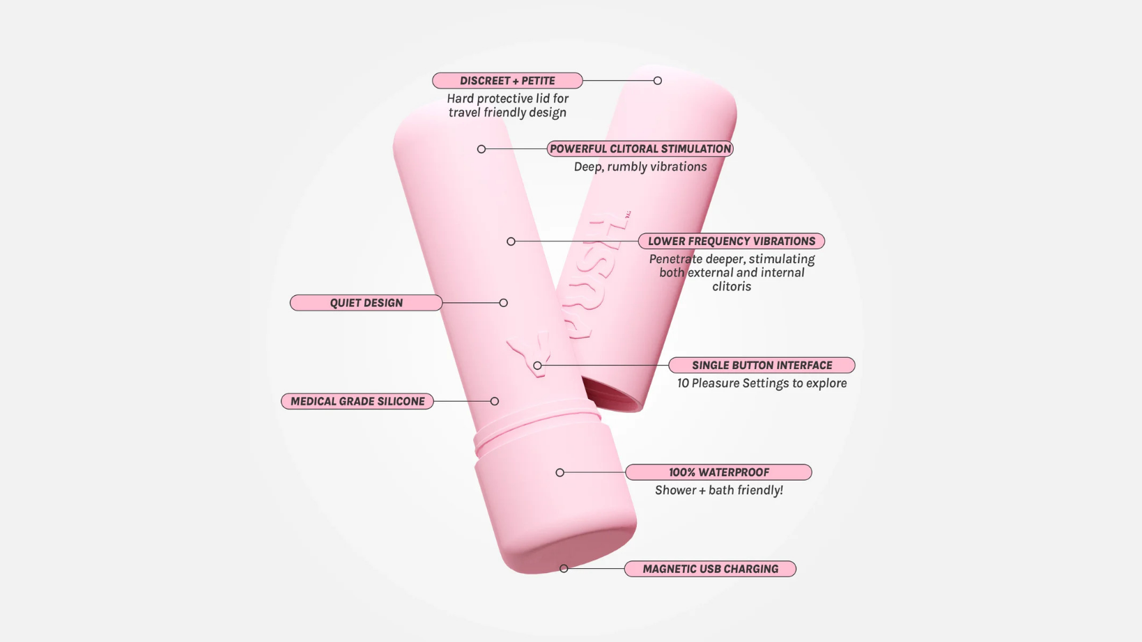 Made from medical-grade silicone, the Gloss is completely body-safe and 100% waterproof, so you can take it anywhere - from bath to shower - without a worry. Cleaning is a breeze: a quick rinse with warm water and gentle soap, then pat dry with a lint-free towel. For those extra-discreet moments (like when your roommate is belting out karaoke in the bathroom), a swipe with Vush You Do You wipes does the trick.
