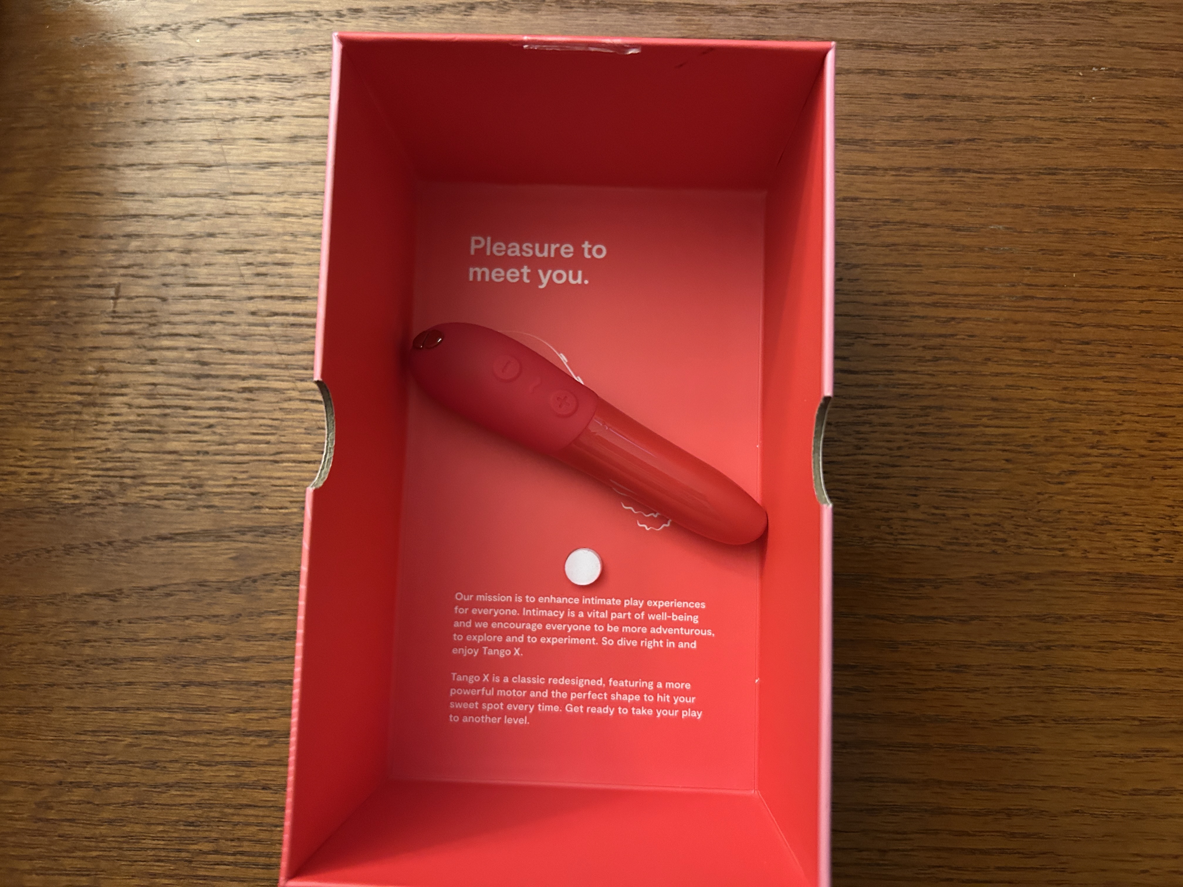 I love unboxing a WeVibe anything. Their copy is funny, sexy, and educational (the big three of product copy for vibes, in my opinion) and the colors are always on point. It always feels very luxurious to open a WeVibe box, so I have no issues here. Unfortunately, when the product itself doesn't measure up, you can feel kind of foolish in the end, loving the packaging and feeling lukewarm about the vibe.
