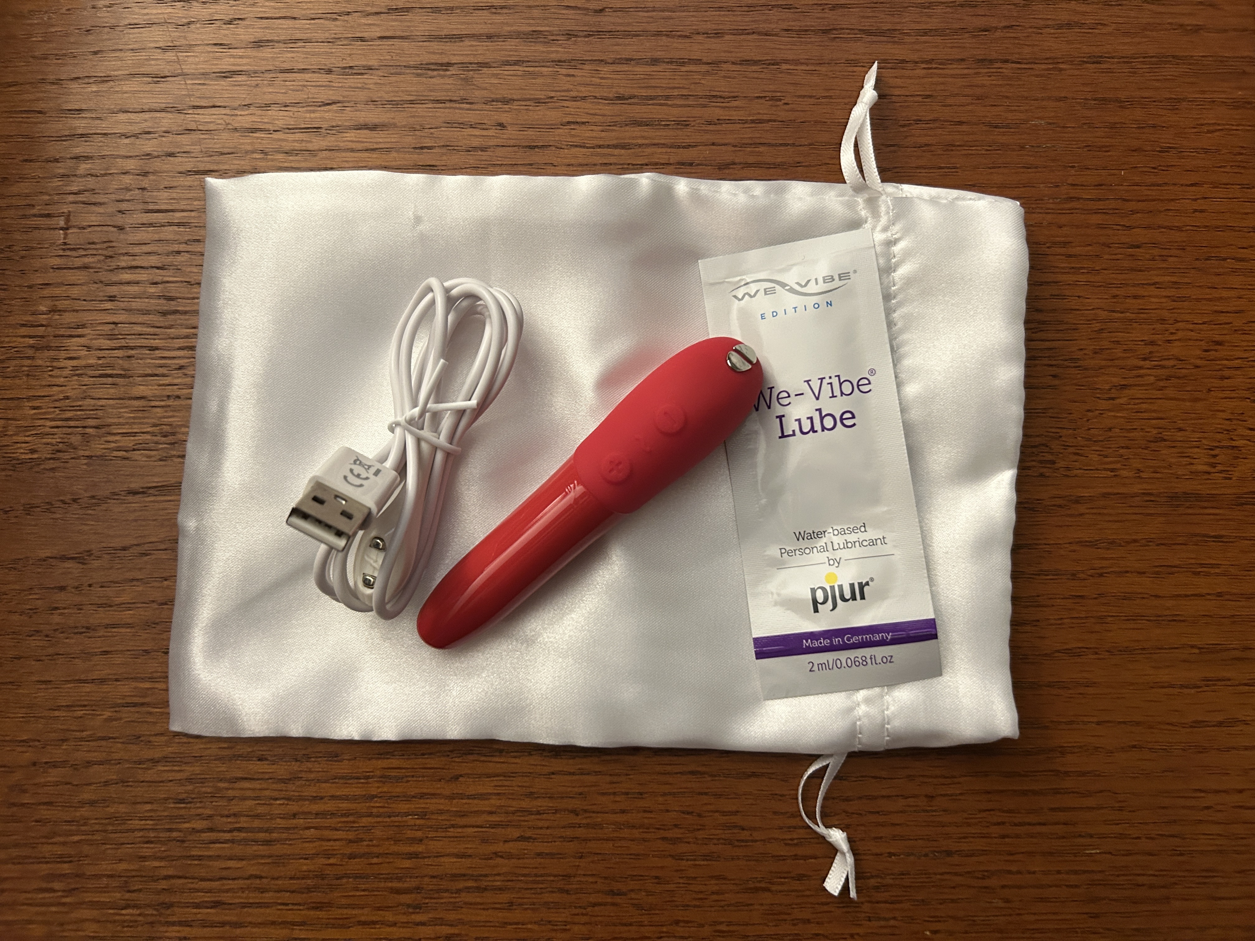 The bullet also came with one of WeVibe's cute instruction manuals, a carrying pouch, and a packet of lube. They were nice little offerings as well, but they still didn't evoke as much of a luxury feel as one would expect from a WeVibe product.